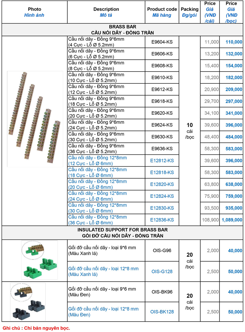 | Stt | Ảnh | Mẫu | Mã | Giá list (VND) |