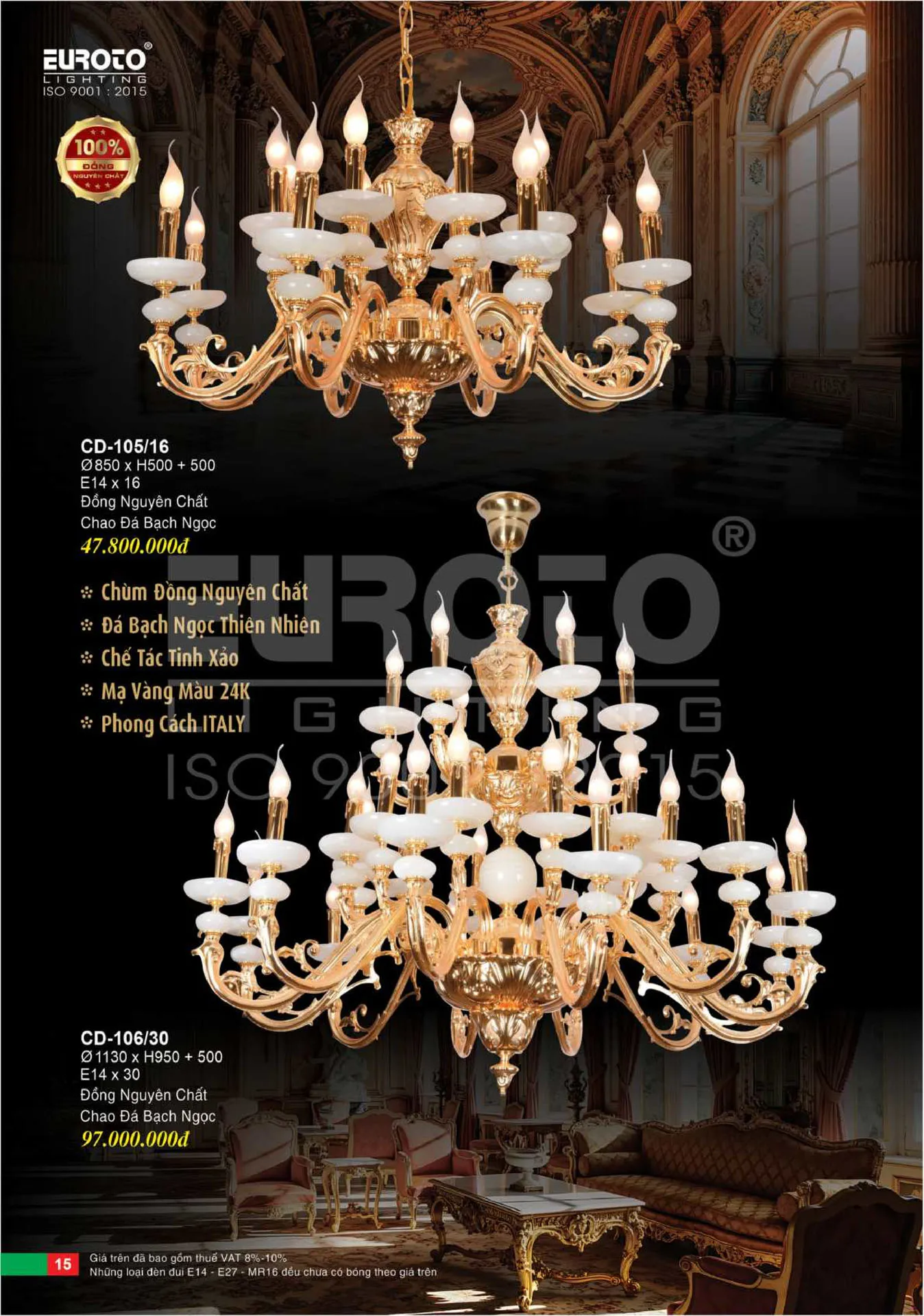 | Thiết Kế: | Đèn Chùm Đồng Nến EUROTO |