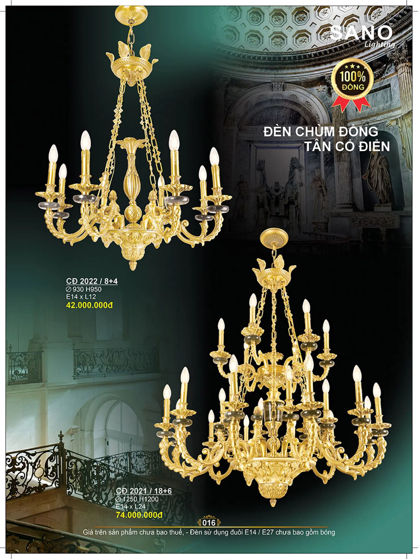 Đèn chùm đồng Sano Ø930*H950mm, E14*L12
