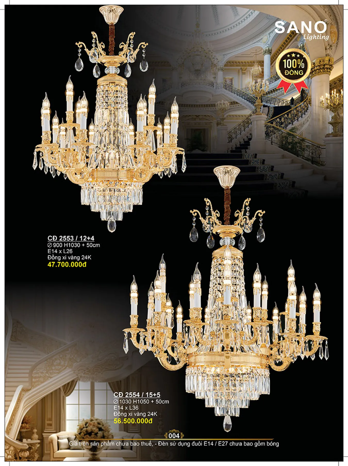 Đèn chùm đồng SANO Ø1030*H1050+50cm - E14*L36 - xi mạ vàng