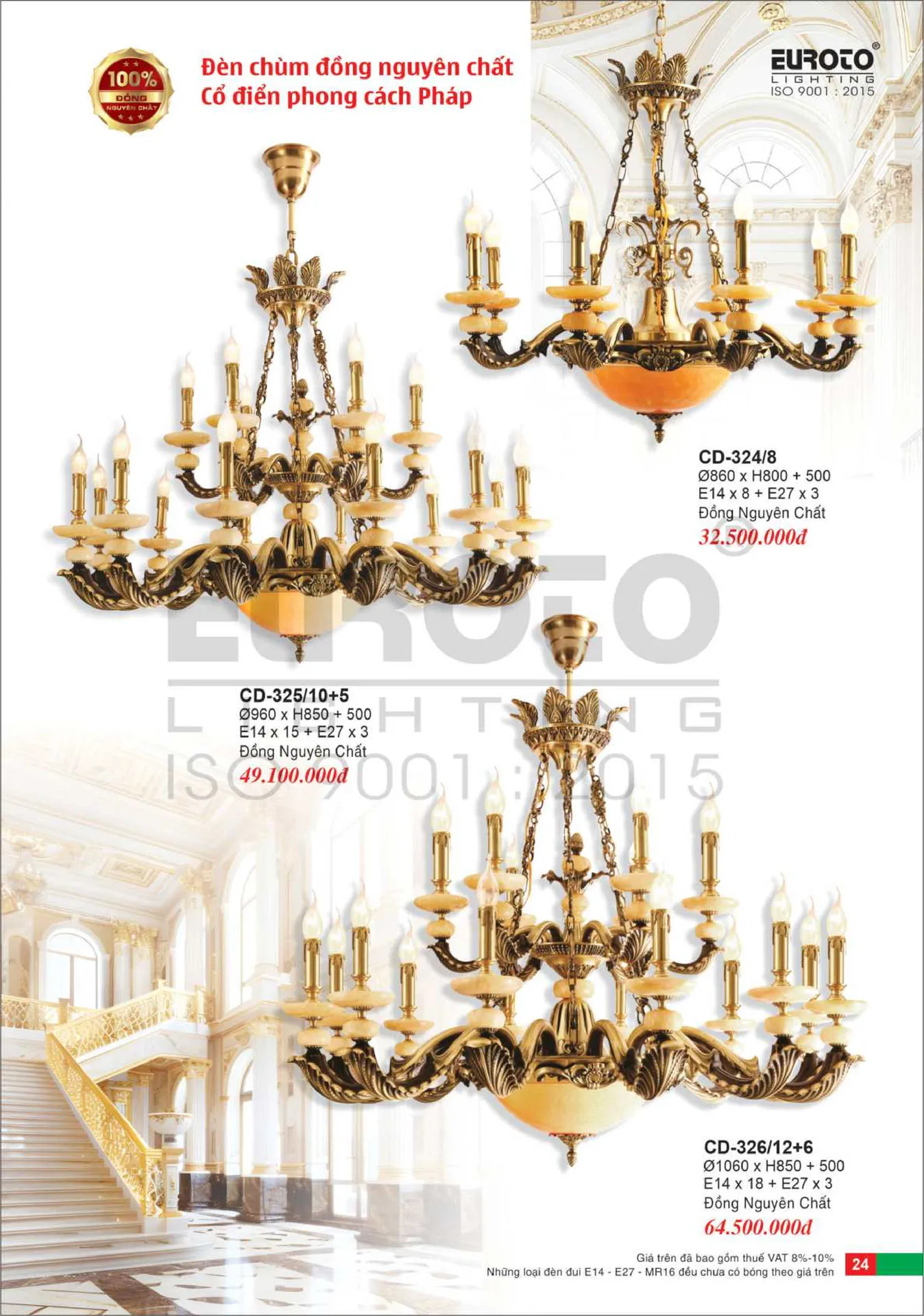 Đèn chùm nến đồng Ø1060*H850+500 - E14*18 + E27*3 đồng nguyên chất