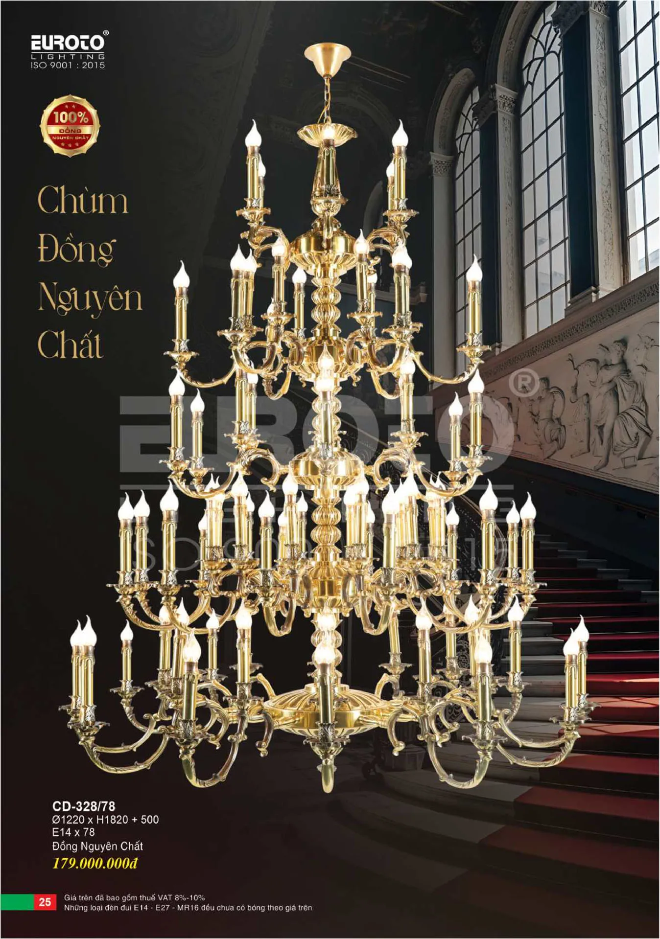 Đèn chùm nến đồng Ø1220*H820+500 - E14*78 đồng nguyên chất