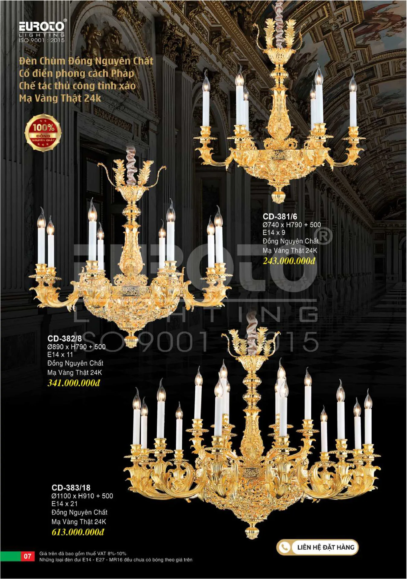 Đèn chùm đồng EUROTO Ø740*H790+500 - E14*9 đồng nguyên chất, mạ vàng thật 24K
