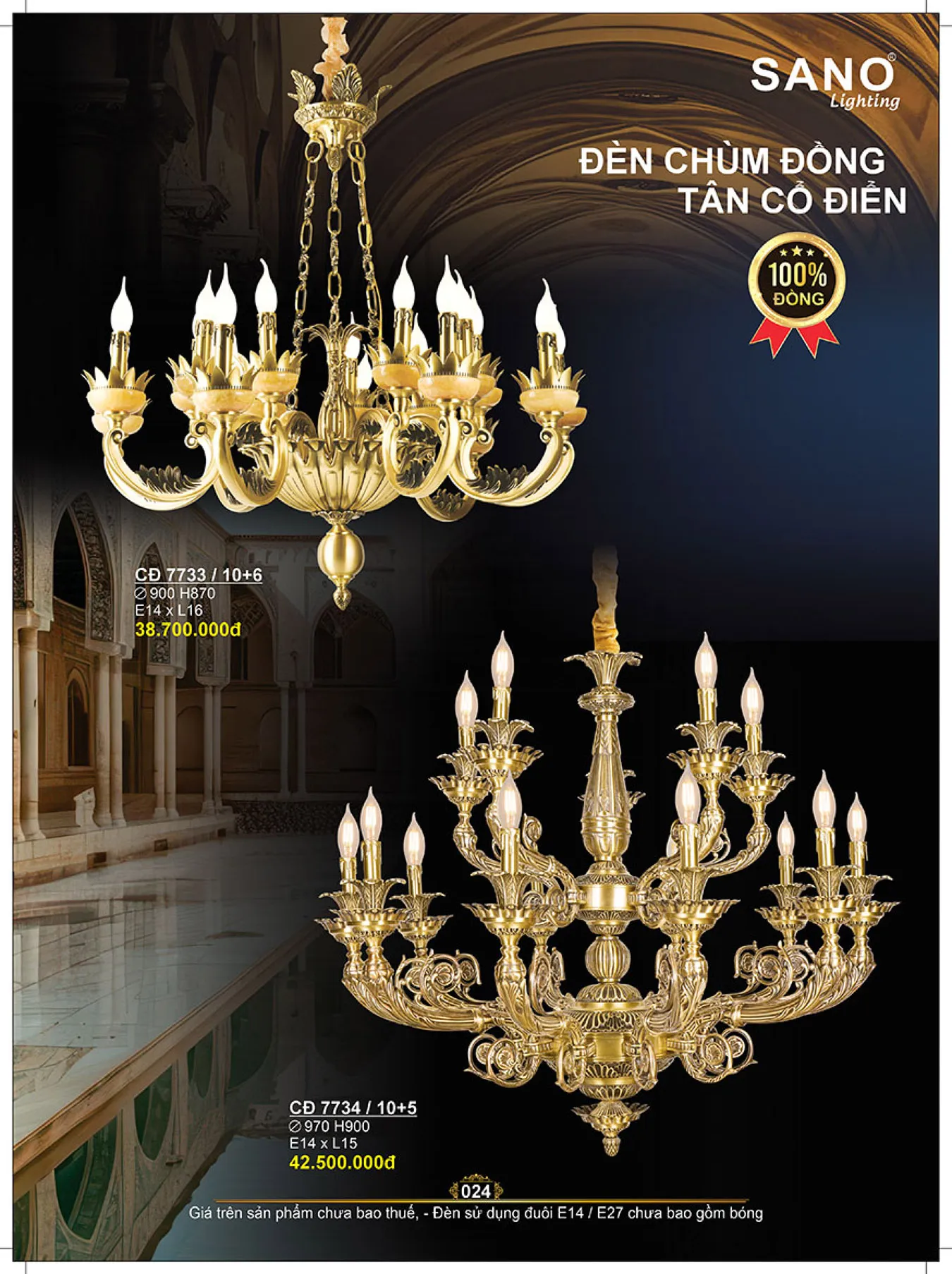 Đèn chùm đồng Sano Ø970*H900 - E14*15