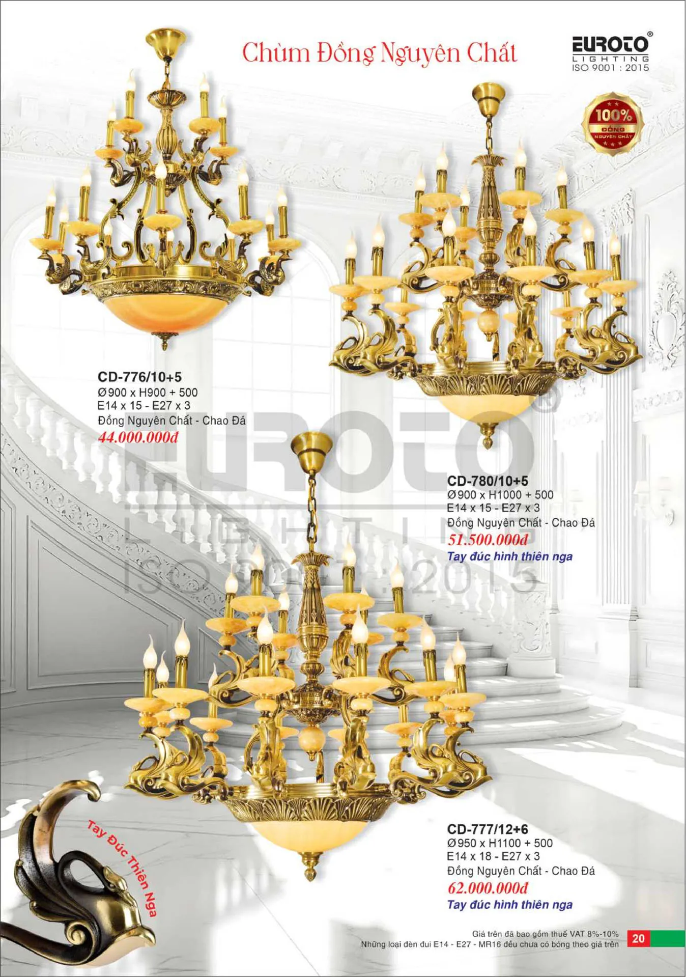 | Thiết Kế: | Đèn Chùm Đồng Nến EUROTO |