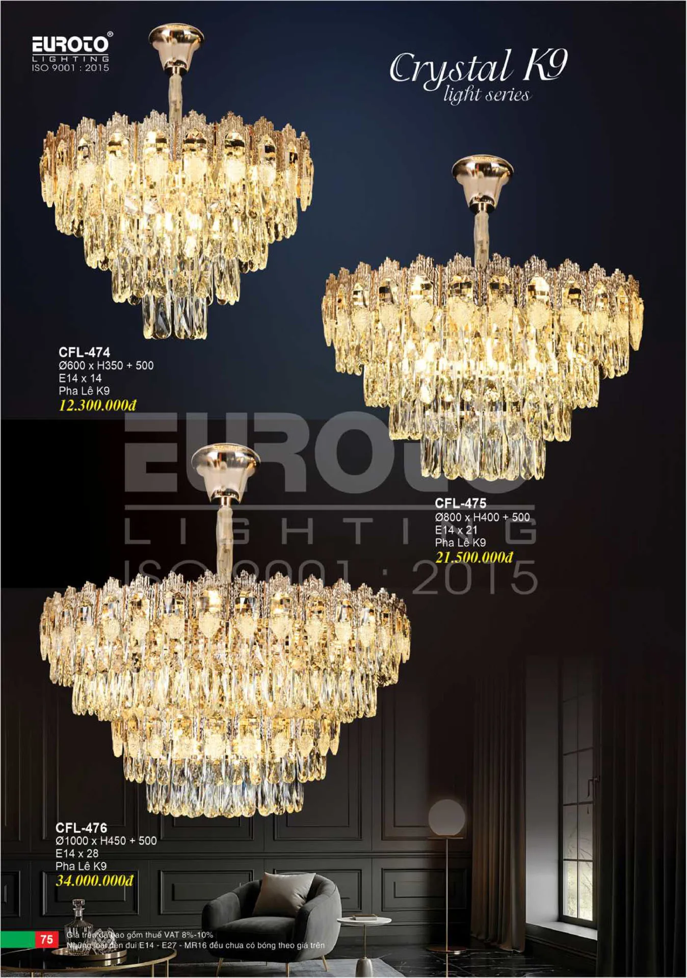 Đèn chùm pha lê Ø600*H350+500 - E14*14