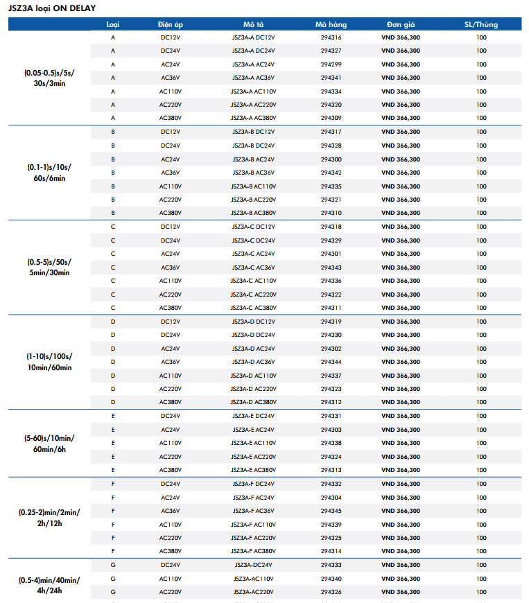 JSZ3A-B AC380V | 294310 | 366.300 | 30% | 256.410 |
