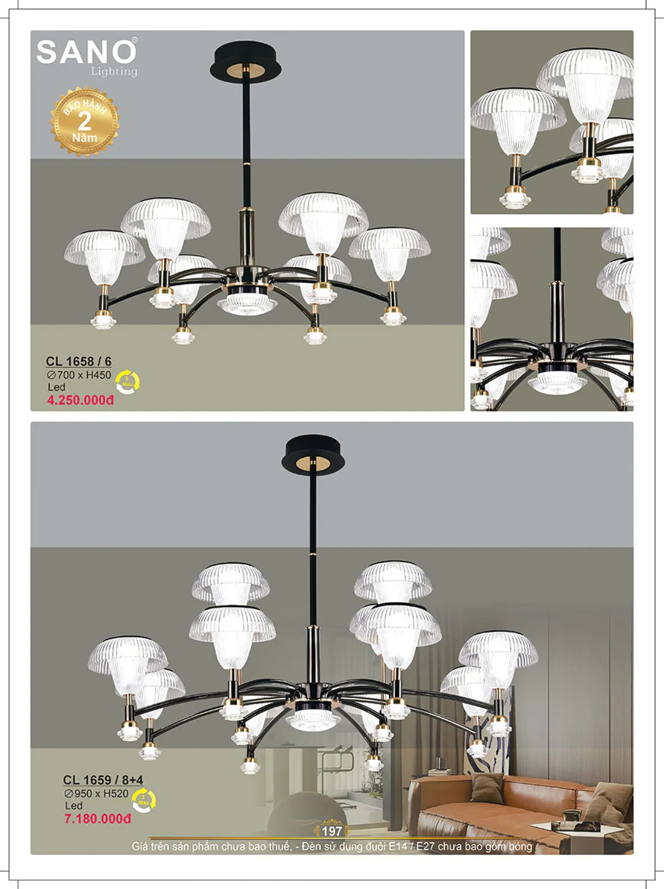 Đèn chùm LED 225W Sano Ø950*H520 - 3 màu ánh sáng