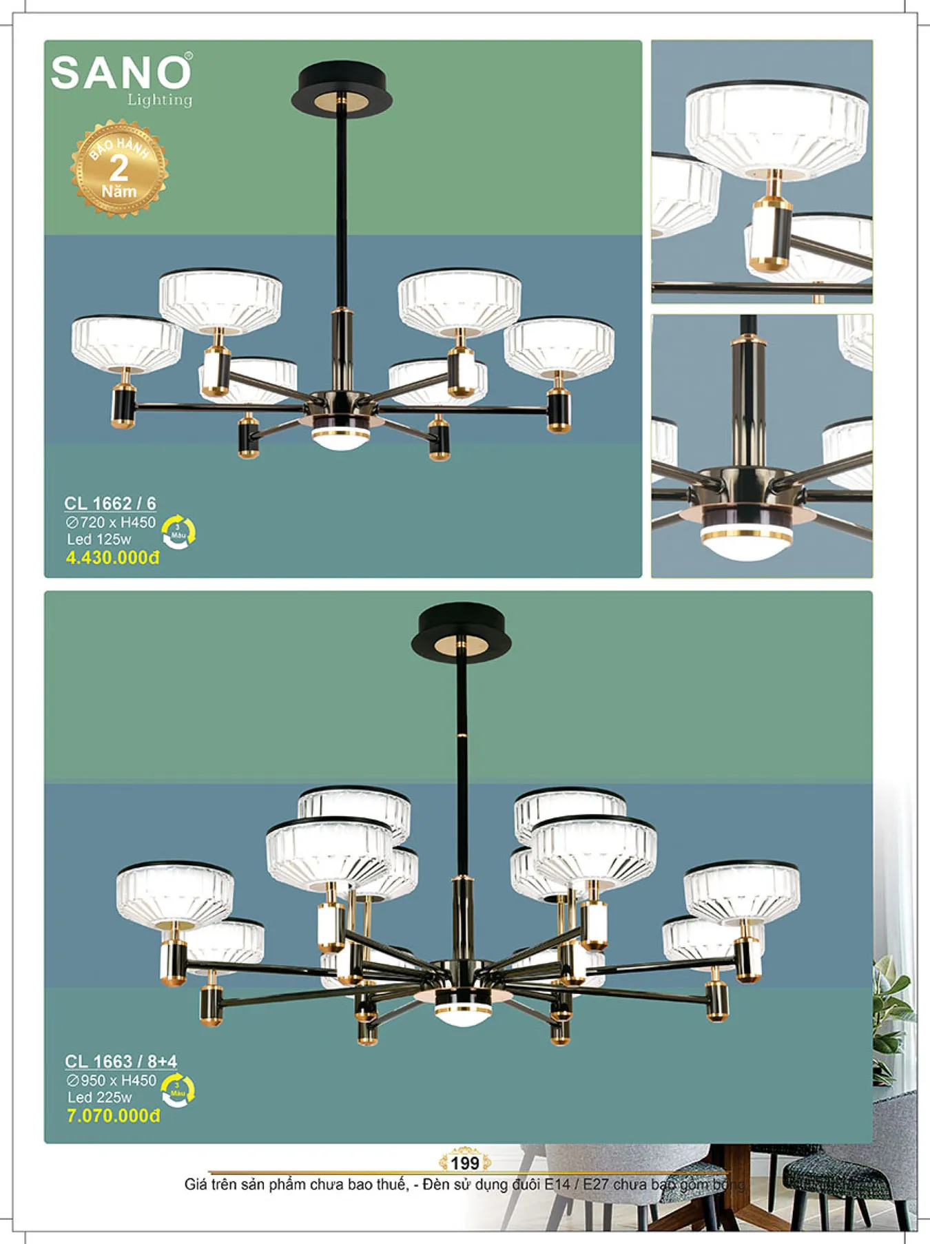 Đèn chùm LED 225W Sano Ø950*H450 - 3 màu ánh sáng
