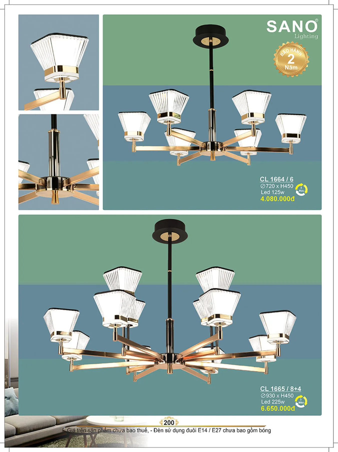 Đèn chùm LED 125W Sano Ø720*H450 - 3 màu ánh sáng