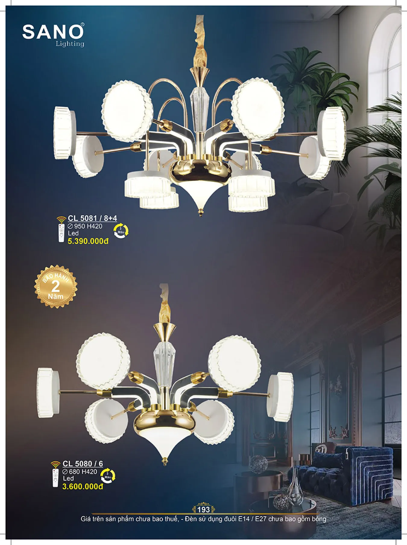 Đèn chùm Sano LED 208W - 3 màu ánh sáng Ø680*H420, có remote