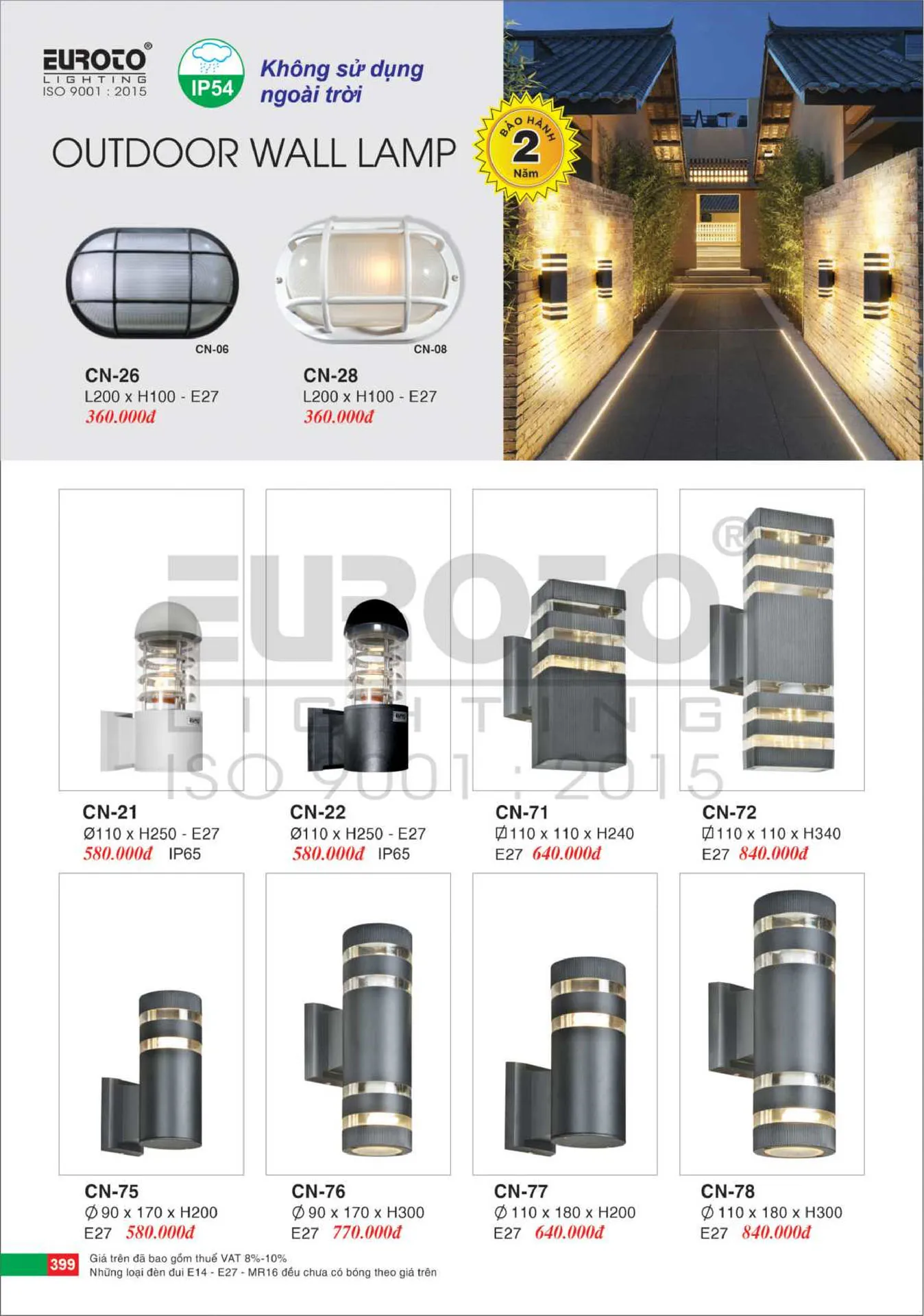 Đèn tường cổng Euroto CN-75 IP54