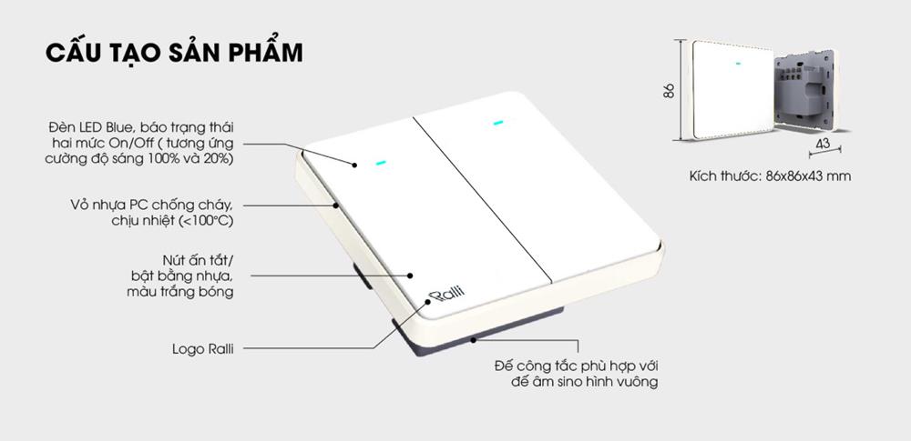 Công tắc cơ điện tử Rạng Đông 2 nút bấm