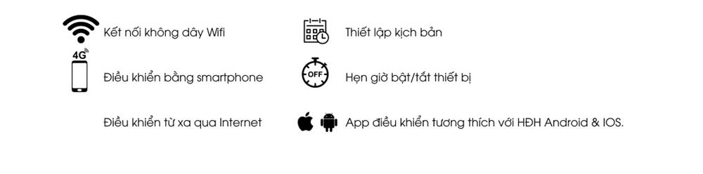 - Phần mềm điều khiển cài đặt trên Smartphone tương thích với hệ điều hành Android và IOS.