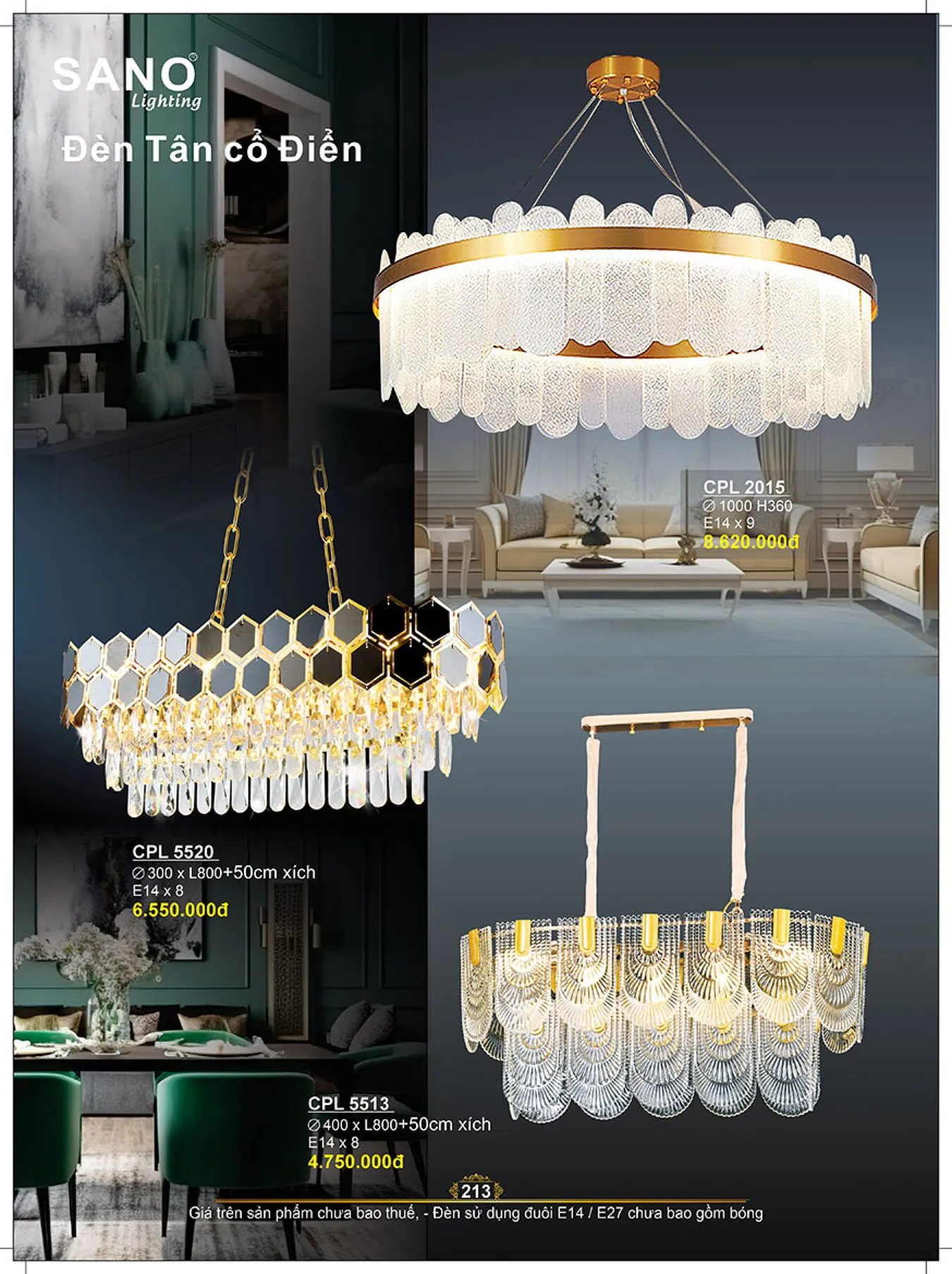 Đèn chùm Pha Lê Sano CPL 5520 Ø300xL900 E14*8