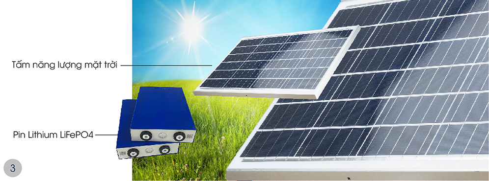 - Pin lưu điện công nghệ Lithium LiFePO4 và tấm pin Năng lượng mặt trời hiệu suất cao, tuổi thọ dài, giảm chi phí thay thế.