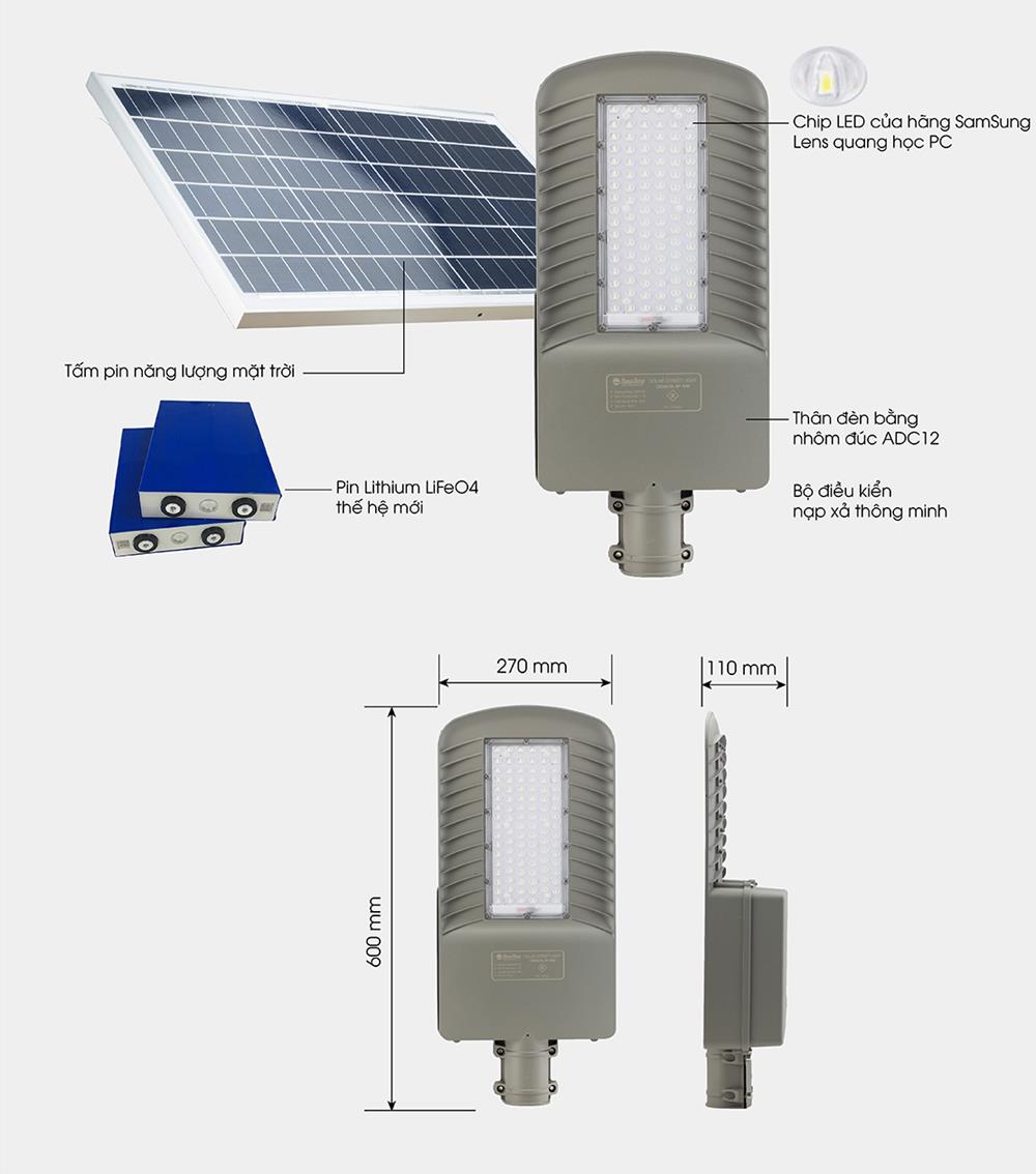 - Sử dụng LED Samsung chuyên dụng cho chiếu sáng ngoài trời, hiệu suất cao, độc quyền tại Việt Nam.