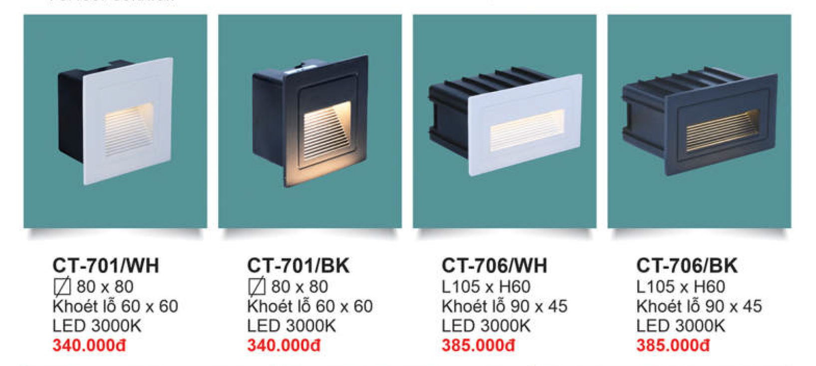 Đèn âm tường cầu thang Ø80*80 khoét lỗ Ø60*60 - LED 3000K