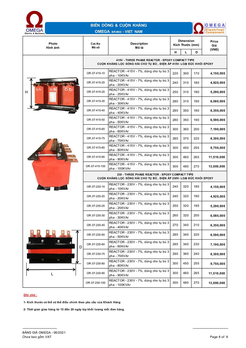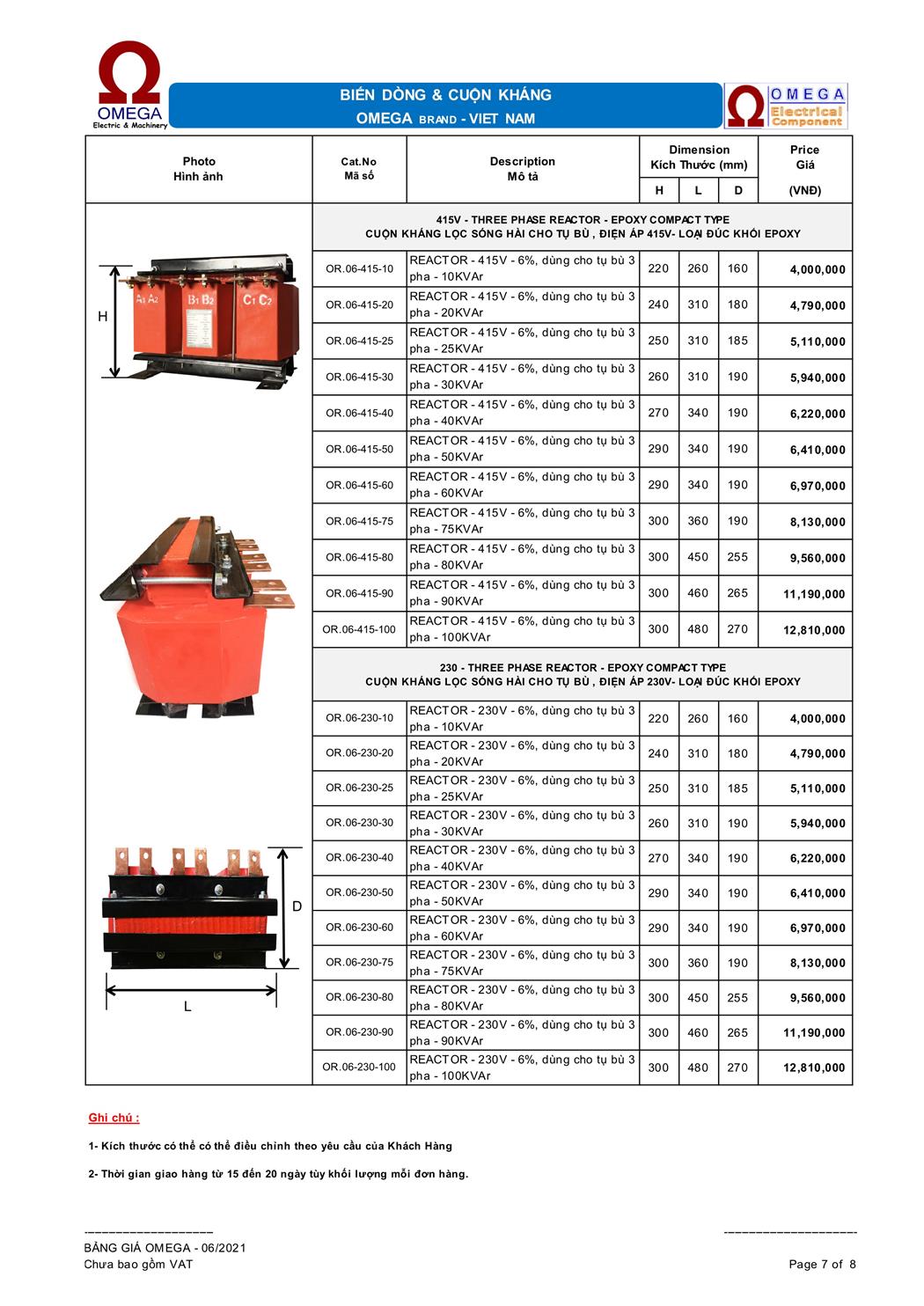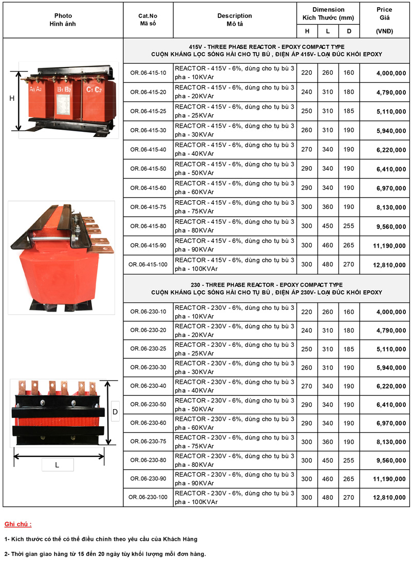 OR.06-230-80 - Cuộn kháng lọc sóng hài cho tụ bù, điện áp 230V - 6%, loại đúc khối EPOXY