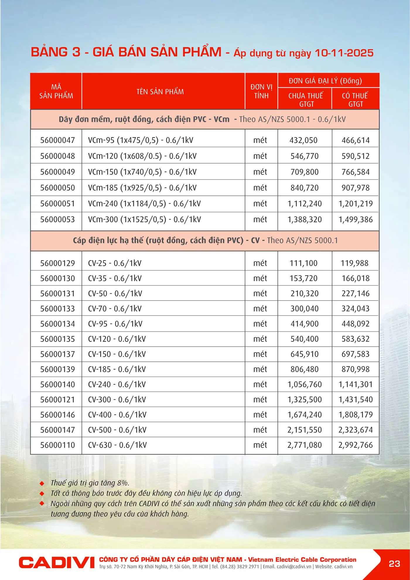 Quý khách hàng có nhu cầu mua số lượng nhiều thiết bị điện thương hiệu CADIVI, vui lòng gửi yêu cầu báo giá qua email [email protected] hoặc báo giá trực tiếp trên website để nhận chiết khấu ƯU ĐÃI TỐT NHẤT trong tháng 11.