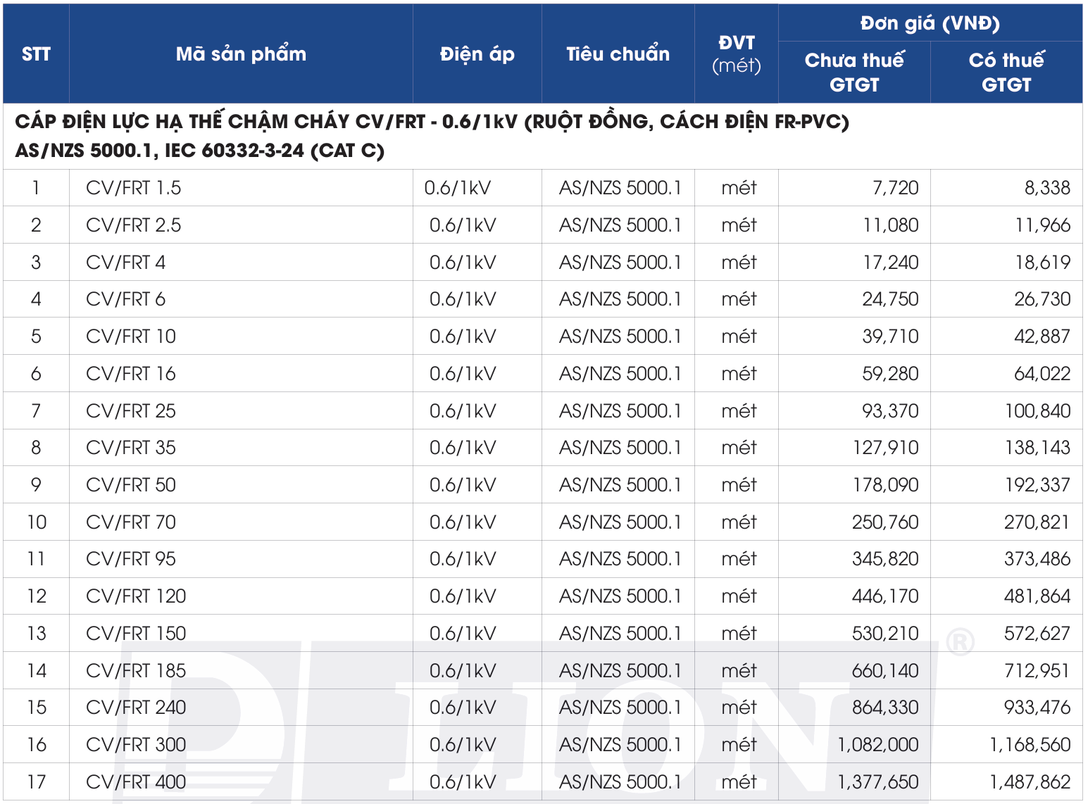 CV/FRT-1.5 - Cáp điện lực chậm cháy CV/FRT 1 lõi Lion