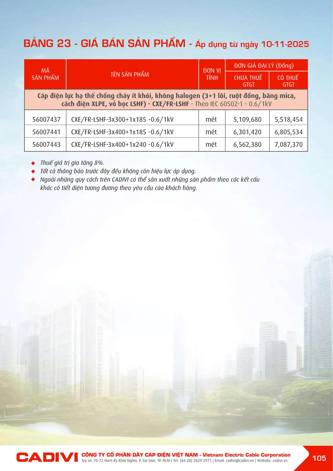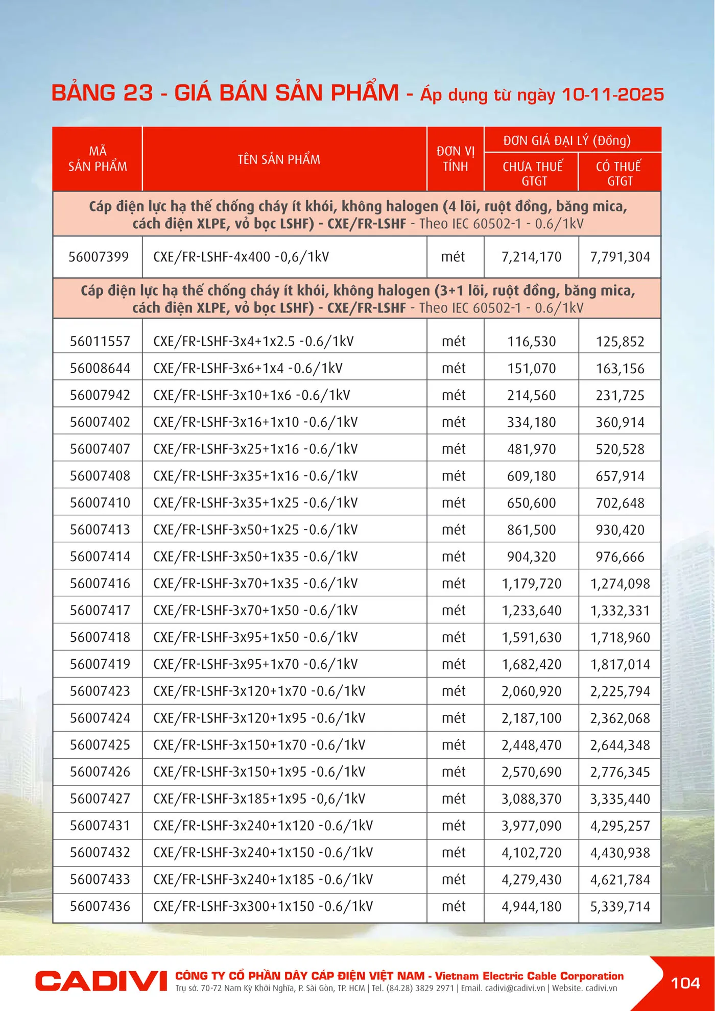 CXE/FR-LSHF-3x185+1x95 | 56007427 | 3.335.440 | 15% | 2.835.124 |