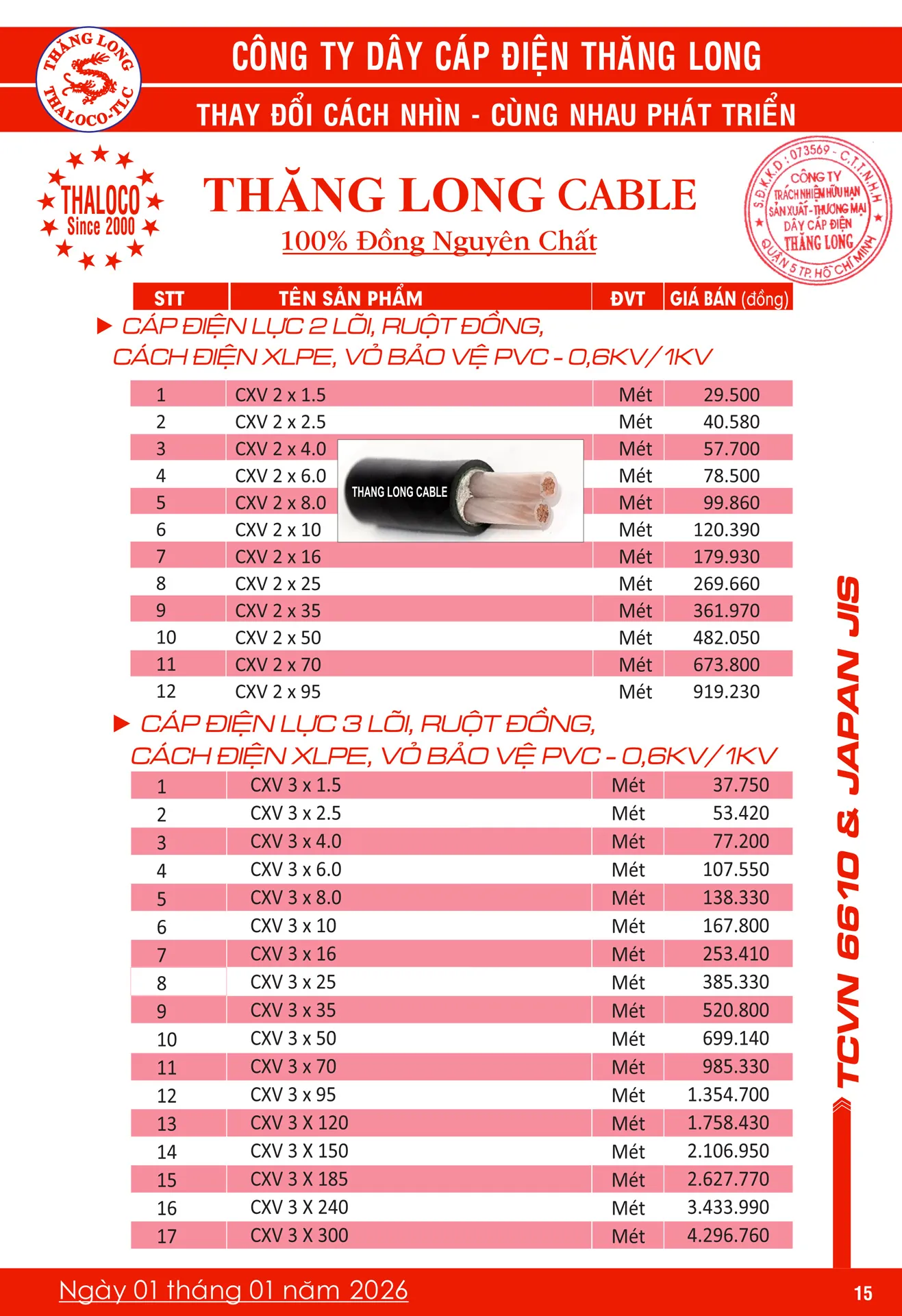CXV 2x1.5 - CXV Cadivi 2 lõi 0.6KV/1KV