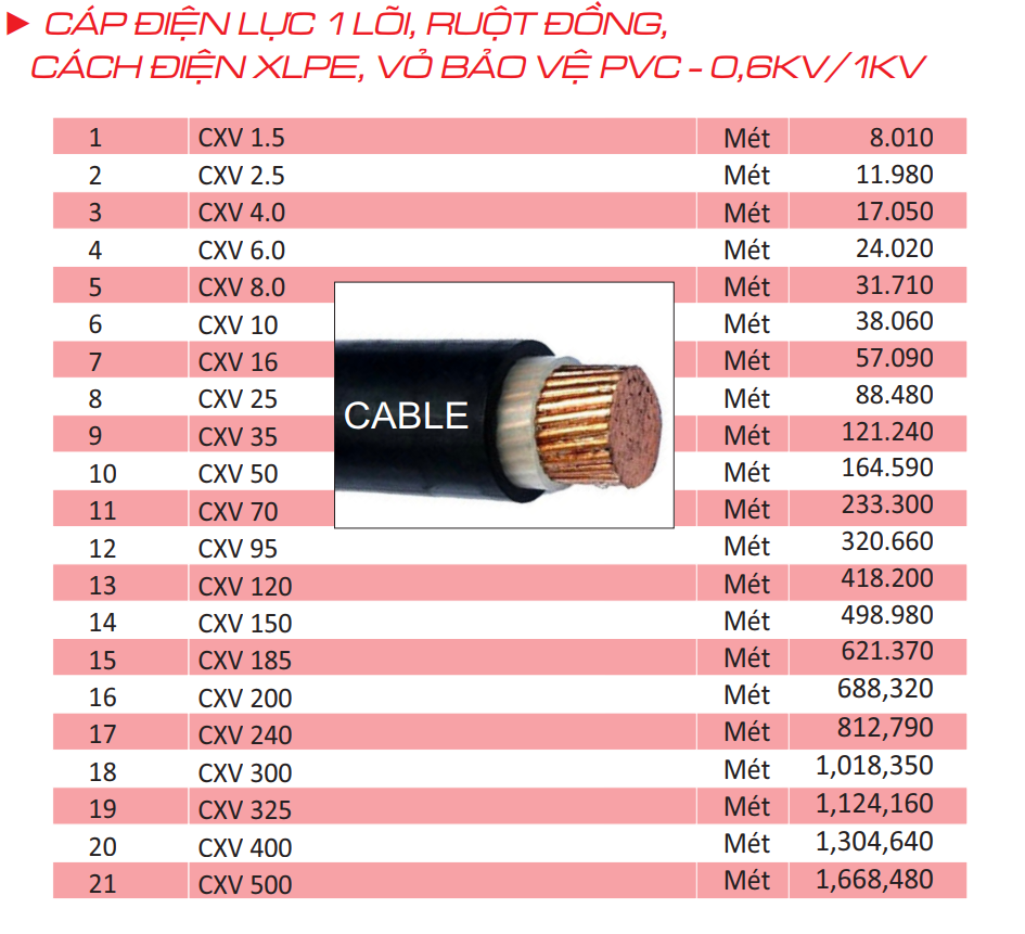 CXV 1.5 - CXV 1 lõi 0.6KV/1KV