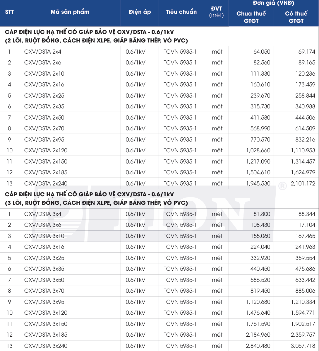 CXV/DSTA-2x25 | CXV/DSTA-2x25 | 258.844 | 14% | 222.606 |