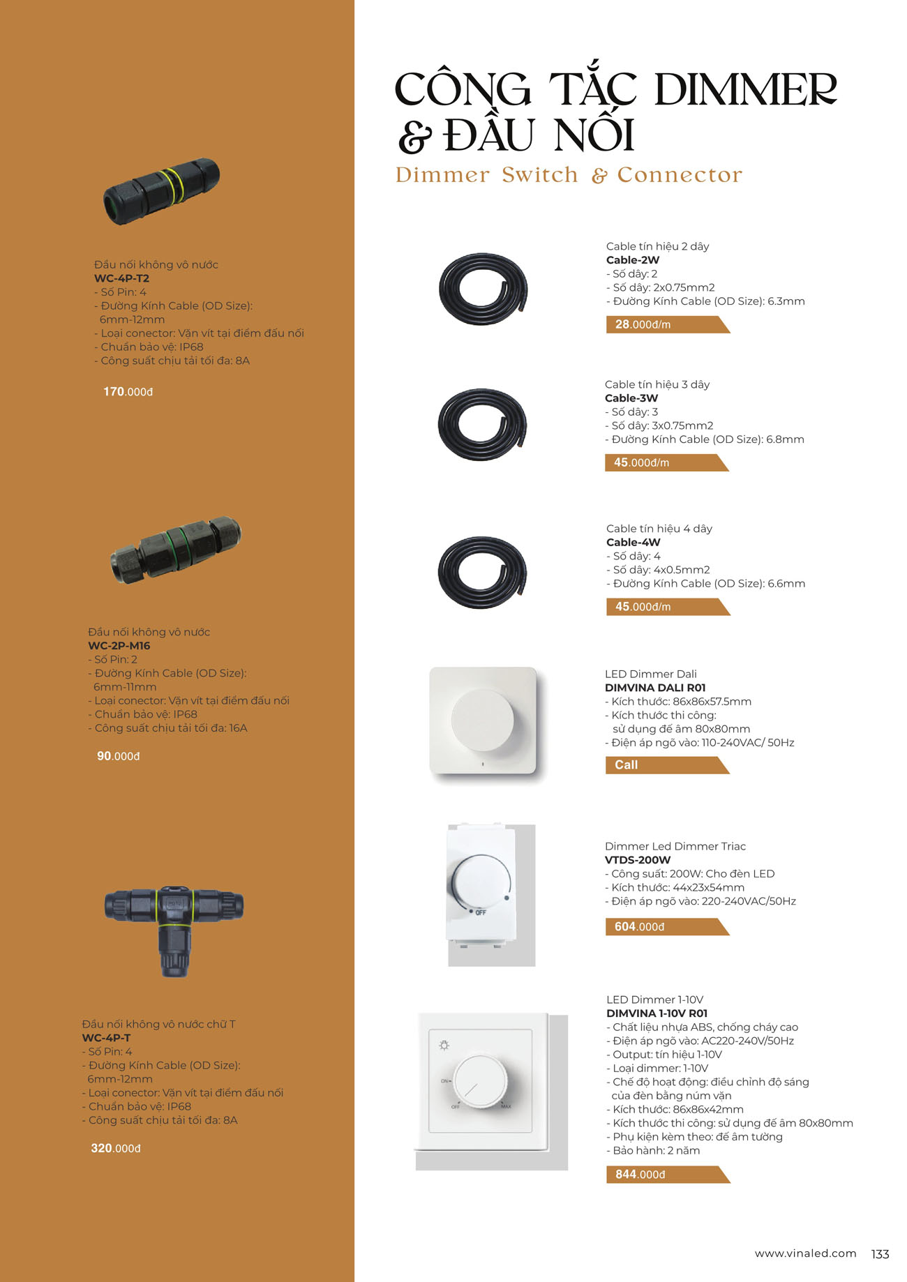 Đầu nối VinaLed WC-4P-T2 chống nước IP68