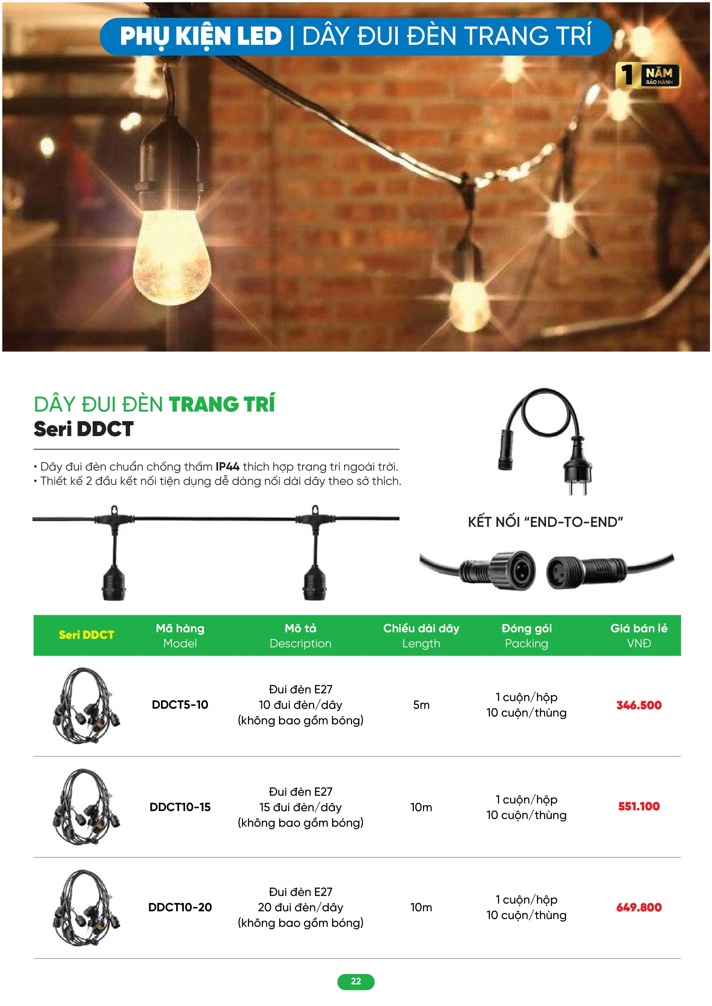 Dây đèn 5m, 10 đuôi E27 | DDCT5-10 | 346.500 | 20% | 277.200 |