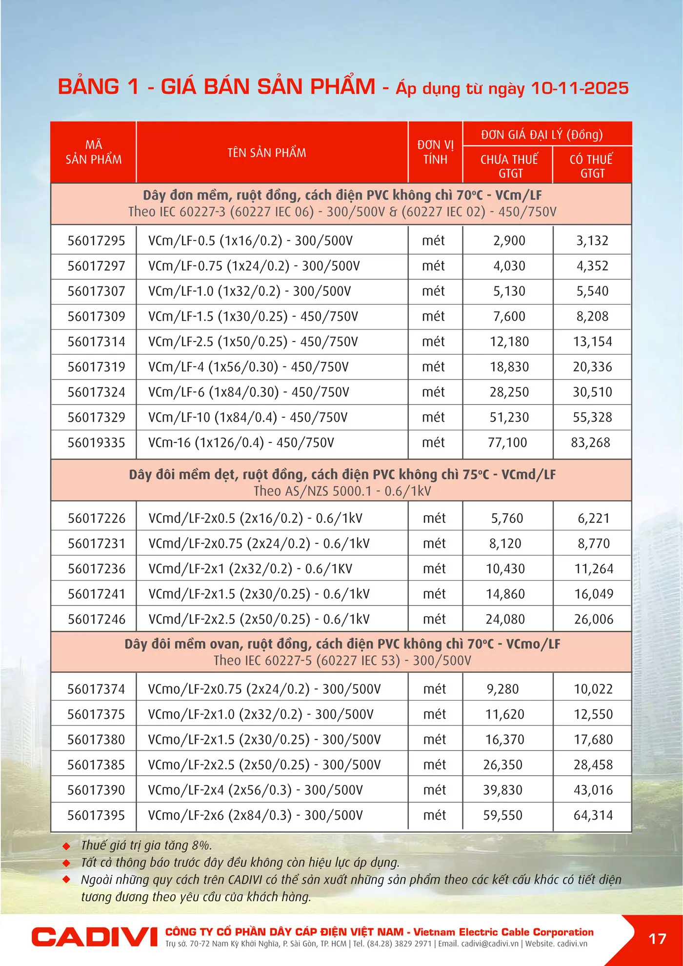 Quý khách hàng có nhu cầu mua số lượng nhiều thiết bị điện thương hiệu CADIVI, vui lòng gửi yêu cầu báo giá qua email [email protected] hoặc báo giá trực tiếp trên website để nhận chiết khấu ƯU ĐÃI TỐT NHẤT trong tháng 11.