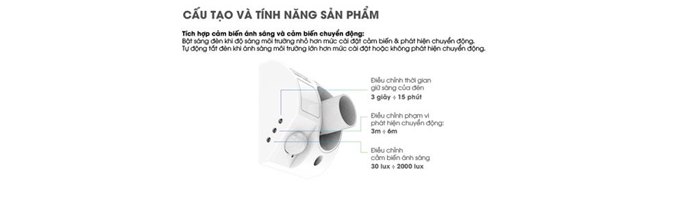 - Điều chỉnh phạm vi hoạt động cảm biến, mức cảm biến ánh sáng, thời gian giữ sáng cho đèn kể từ khi không phát hiện chuyển động