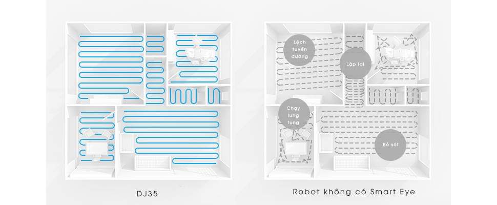 -Robot hút bụi lau nhà deebot DJ35 được trang bị công nghệ Smart Eye – đôi mắt vàng trong làng quan sát ^_^ . Sử dụng thuật toán Slam hoạch định khu vực làm việc, tích hợp trí tuệ nhân tạo tối ưu hóa khả năng làm việc. Deebot DJ35 được xem là dòng sản phẩm thông minh cao cấp và mạnh mẽ, hiểu rõ từng chi tiết trong ngôi nhà bạn, từ đó đưa ra lộ trình – không chạy lung tung hay bỏ sót bất kỳ ngỏ ngách nào.