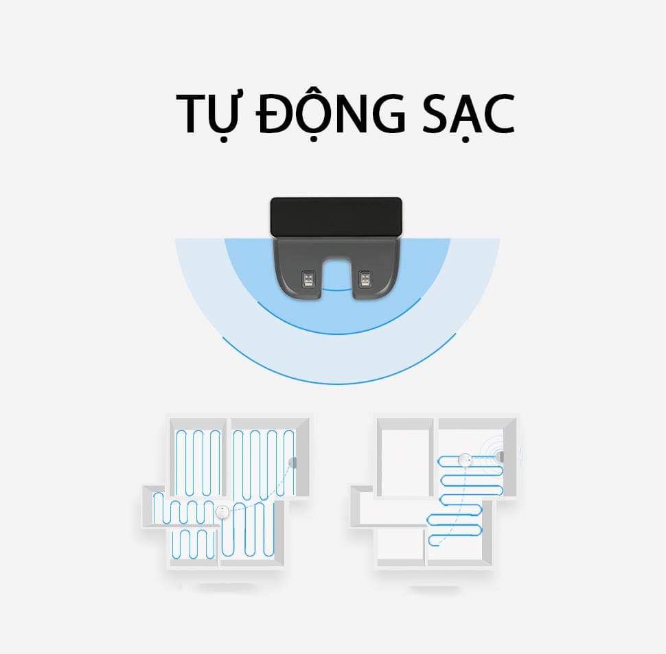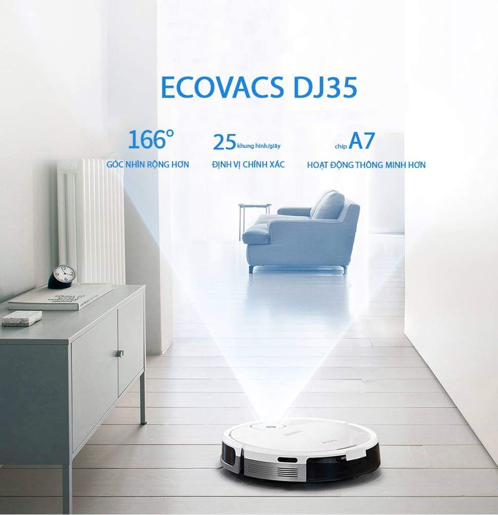 – Robot lau nhà Ecovacs deebot dj35 tự động quay về nơi sạc khi hết pin.
