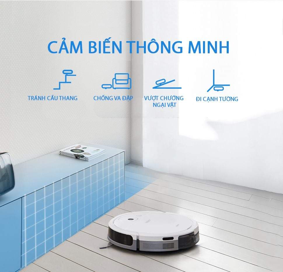 Robot lau nhà Ecovacs deebot dj35 tích hợp công nghệ thông minh tự phát hiện chướng ngại vật, sử dụng bộ cảm biến chống va chạm và đệm mềm để tránh chướng ngại vật và bảo vệ đồ đạc.