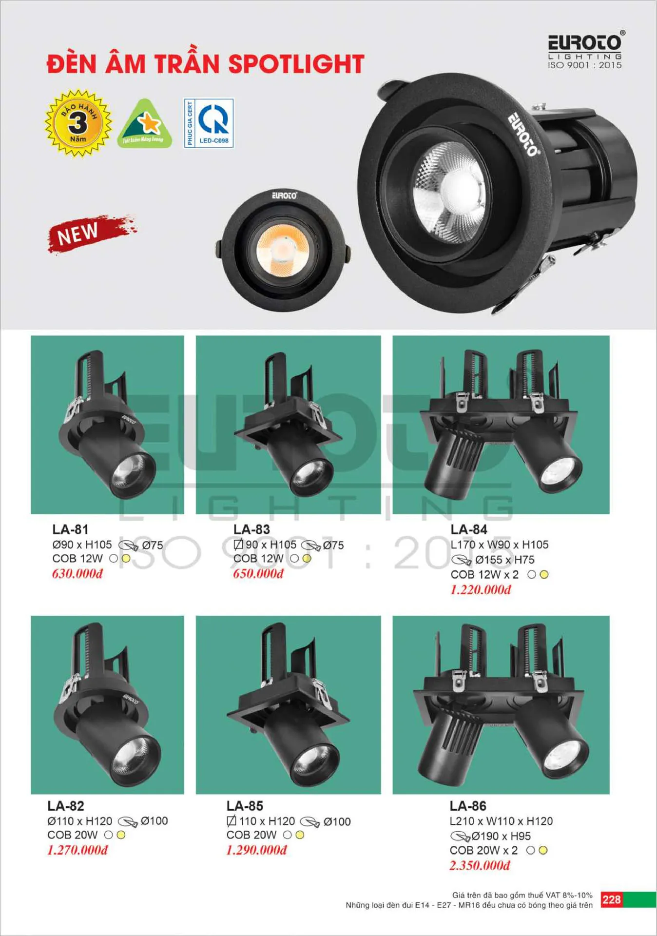 Đèn âm trần chiếu điểm Euroto LA-81 Ø75/90*H105 12W