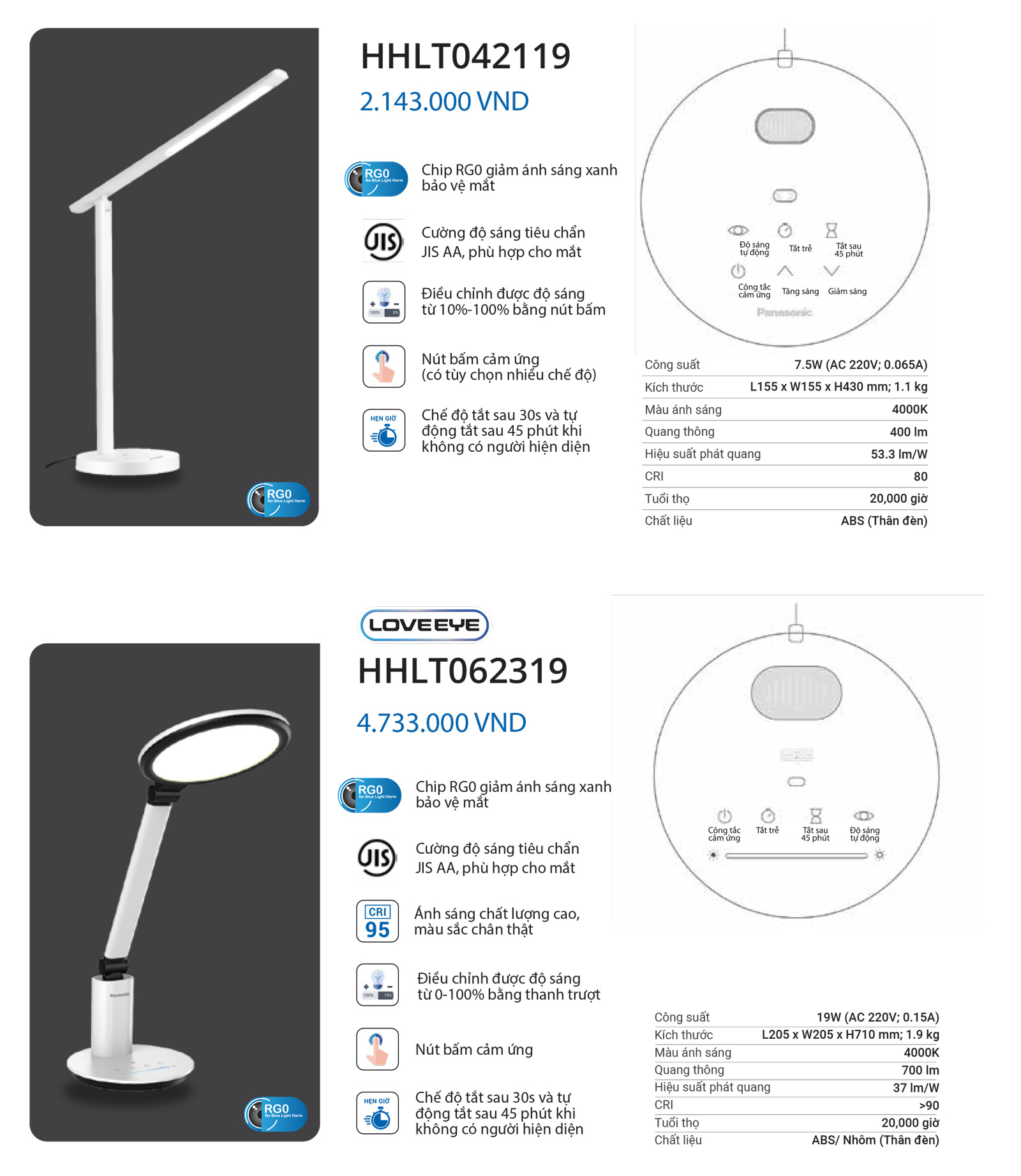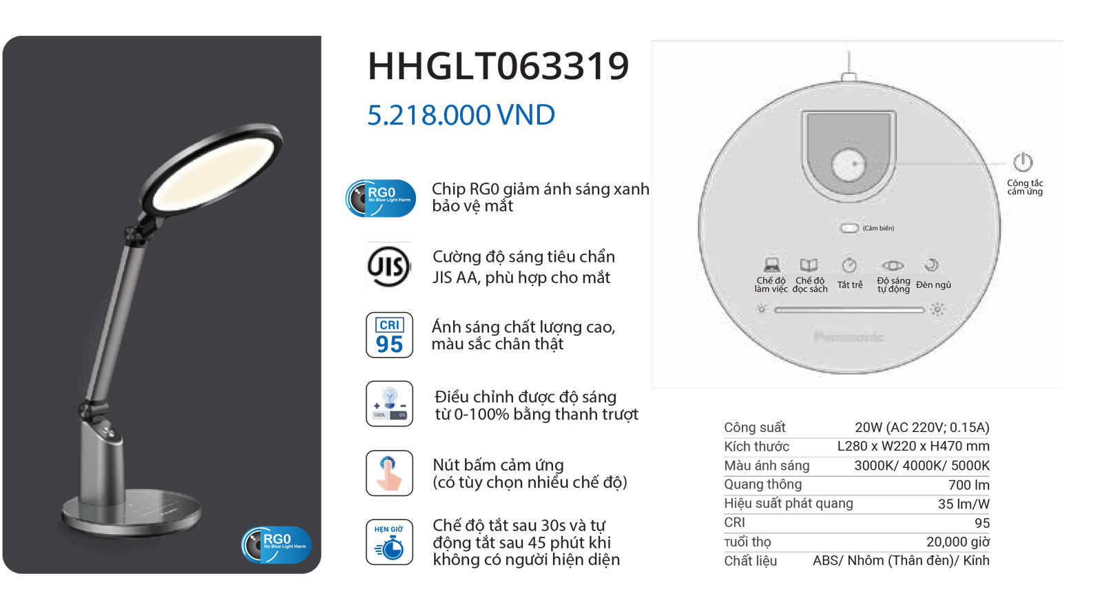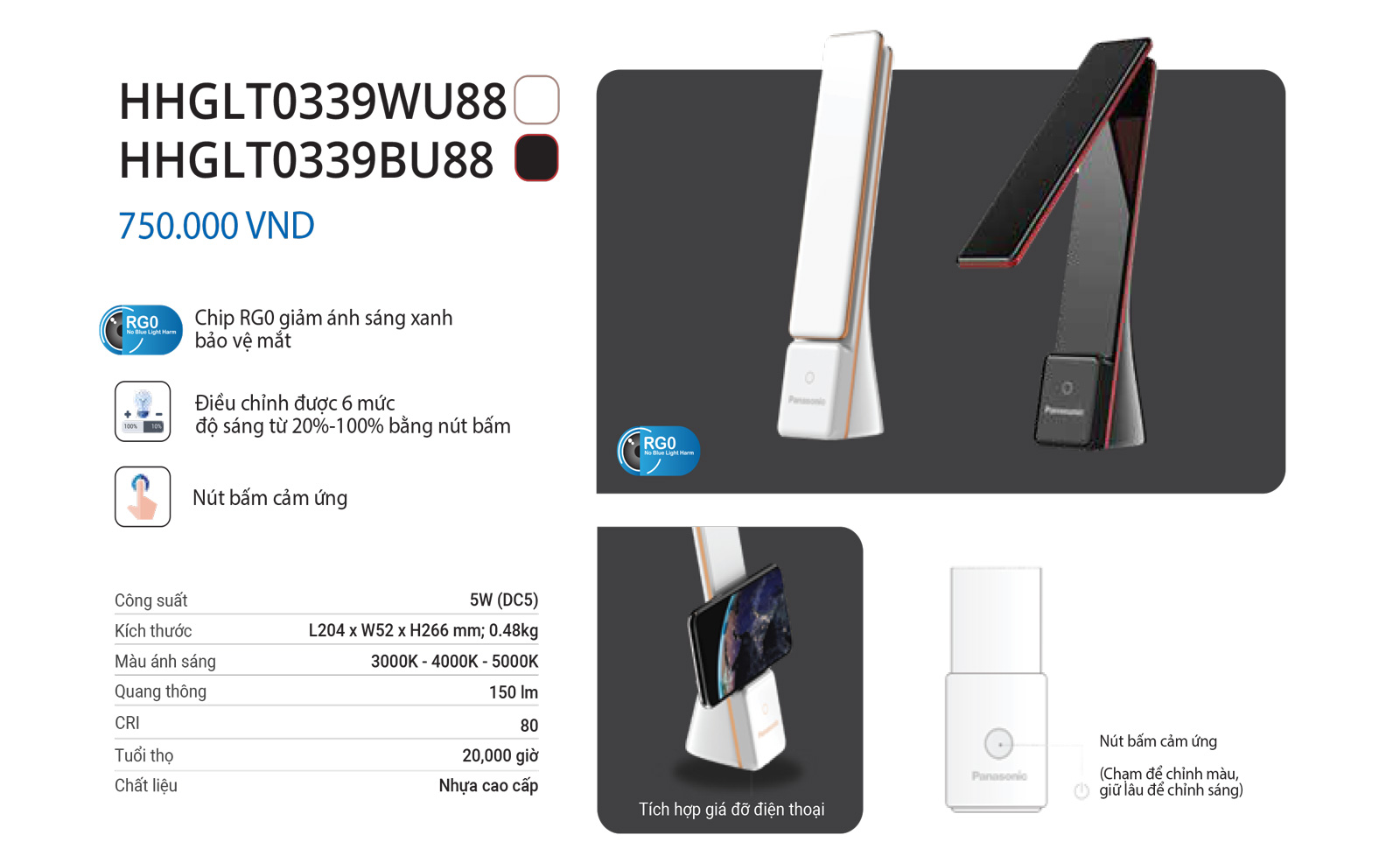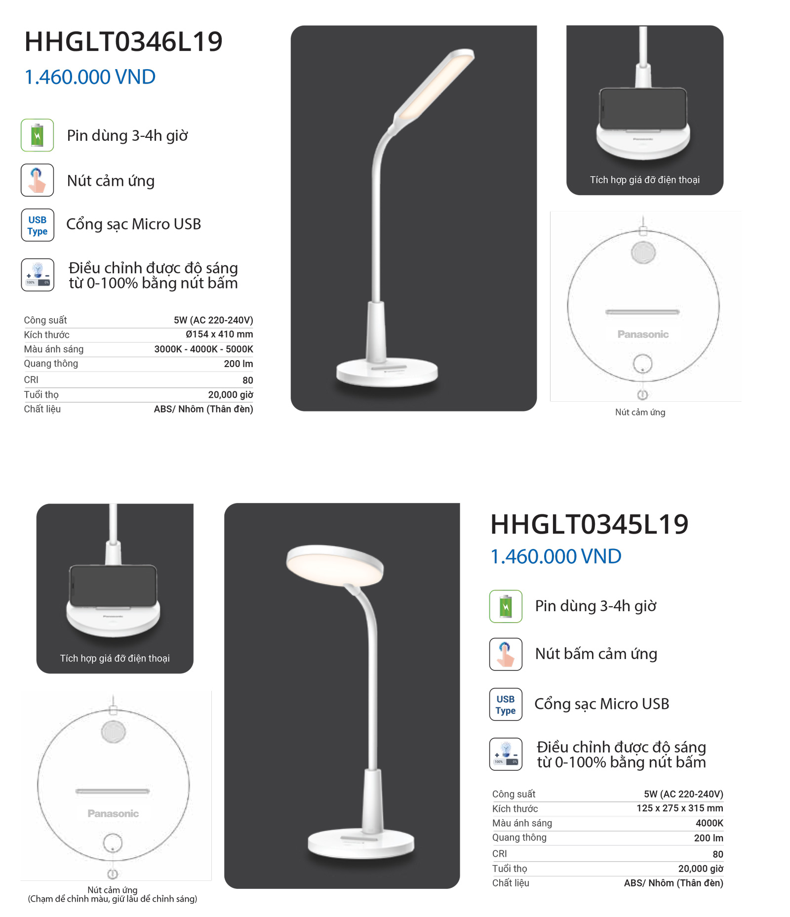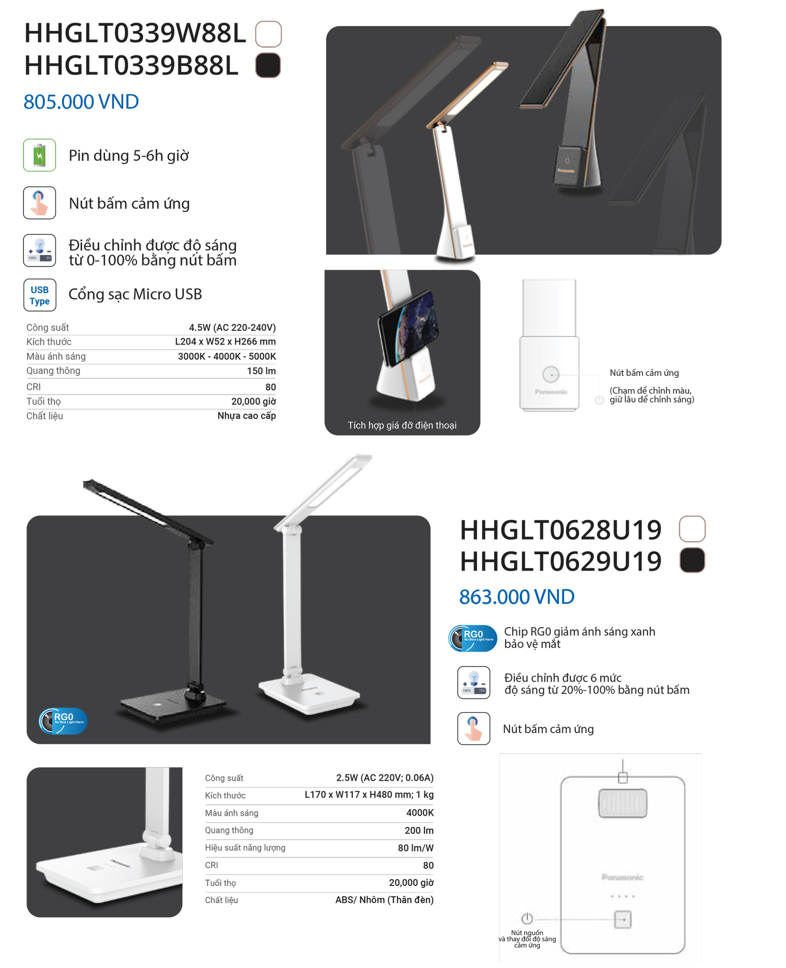 Đèn bàn led Panasonic 12W (12W Đèn + 5W USB) (AC 220V; 0.1A)