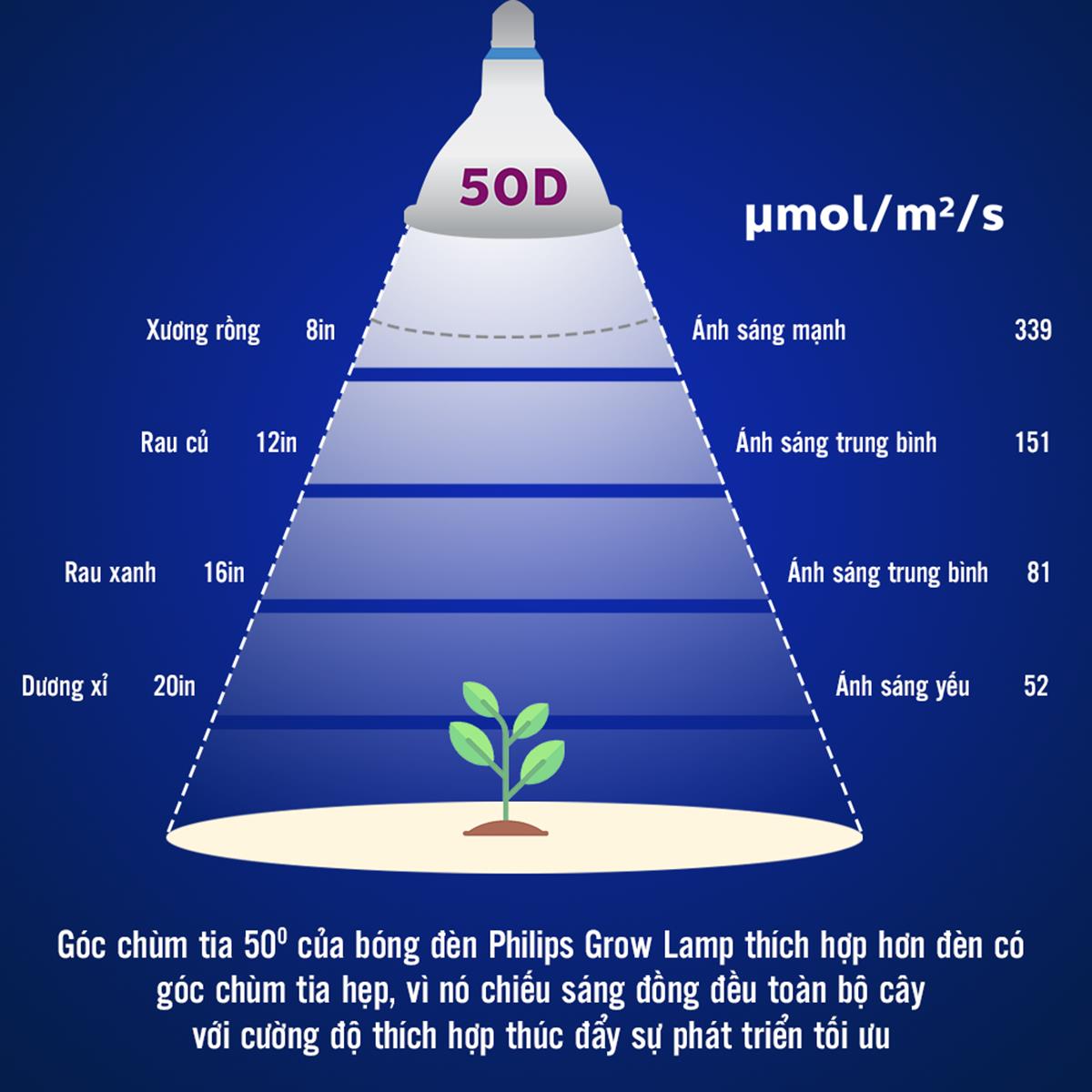 Đèn chiếu cây Philips LED Grow 16W Par38 E27 950 50D