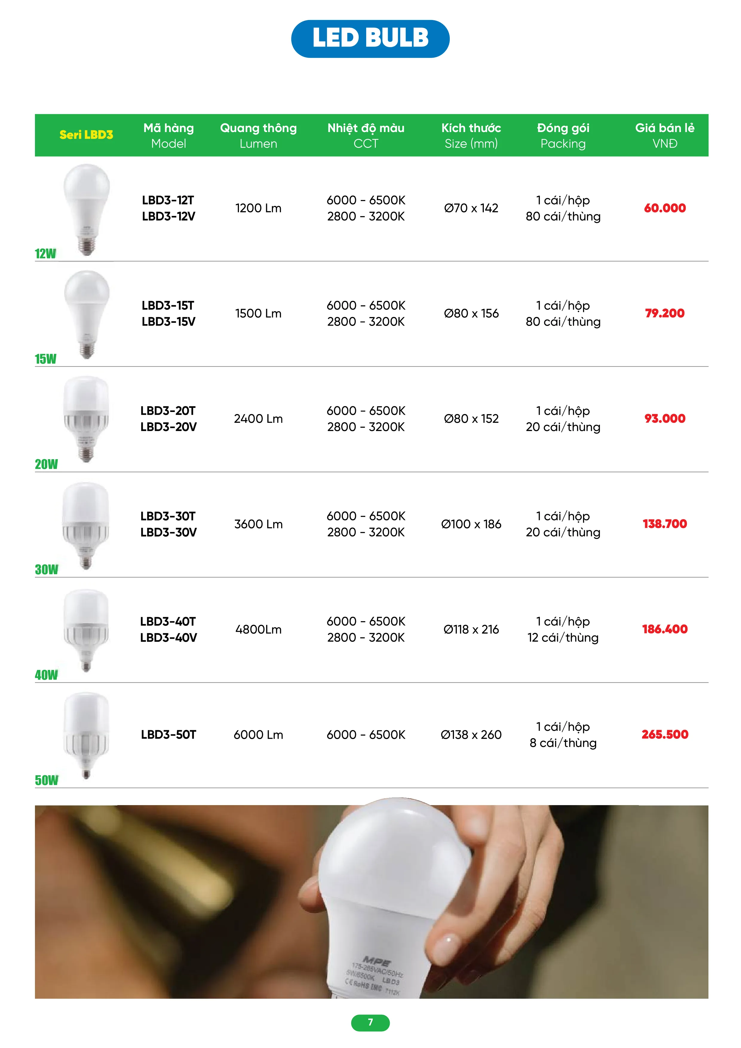 Ánh sáng Vàng | LBD3-12V | 60.000 | 20% | 48.000 |