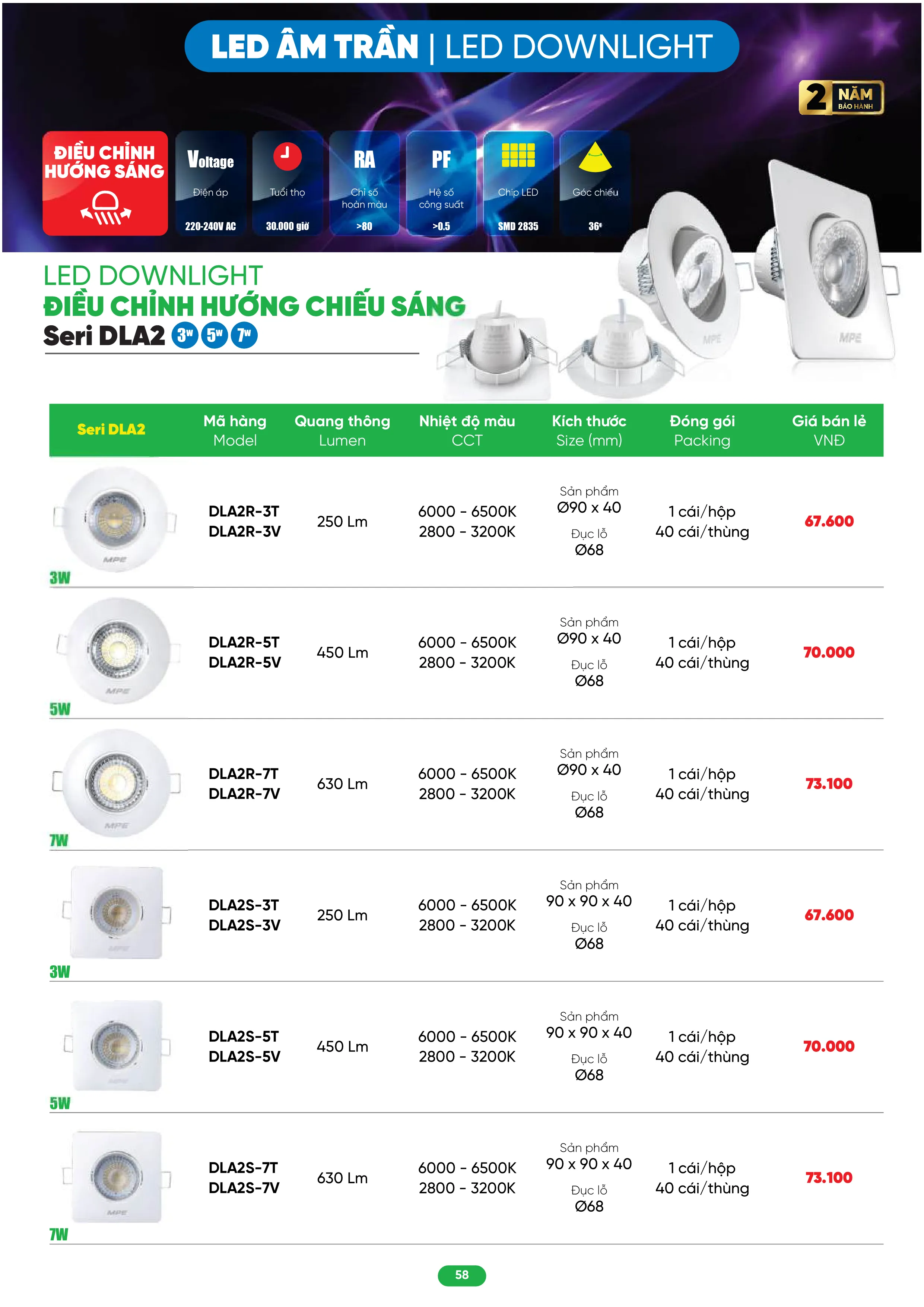 Ánh sáng trắng | DLA2S-7T | 73.100 | 20% | 58.480 |