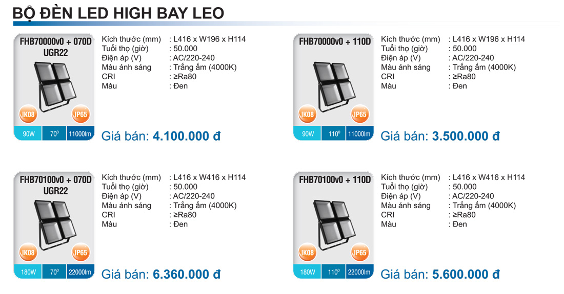 Đèn led LEO 90W, góc chiếu 110 độ Mã sản phẩm FHB70000v0 + 110D Thương hiệu Megaman Danh mục Đèn HighBay (Megaman) Phân loại Đèn nhà xưởng Bảo hành 12 tháng (Theo hãng) Xem Bảng giá đèn MEGAMAN 2025 Sản phẩm đã hết hàng 1 2 3 4 5 6 7 8 9 10+ Số lượng Số lượng CHỌN SẢN PHẨM BÁO GIÁ NHANH Hướng dẫn đặt hàng | Bảo hành & Đổi trả Chỉ đường trên Google Maps HỖ TRỢ ĐẶT HÀNG/BÁO GIÁ Thứ 2 - Thứ 7 (7h30 - 17h) Lê Loan0769177877 Gọi điện Nhắn tin Thanh Quy0909617877 Gọi điện Nhắn tin Đặng Hồng Thái0938397877 Gọi điện Nhắn tin THÔNG SỐ KỸ THUẬT Thông số kỹ thuật đang được cập nhật (hoặc xem mô tả bên dưới)