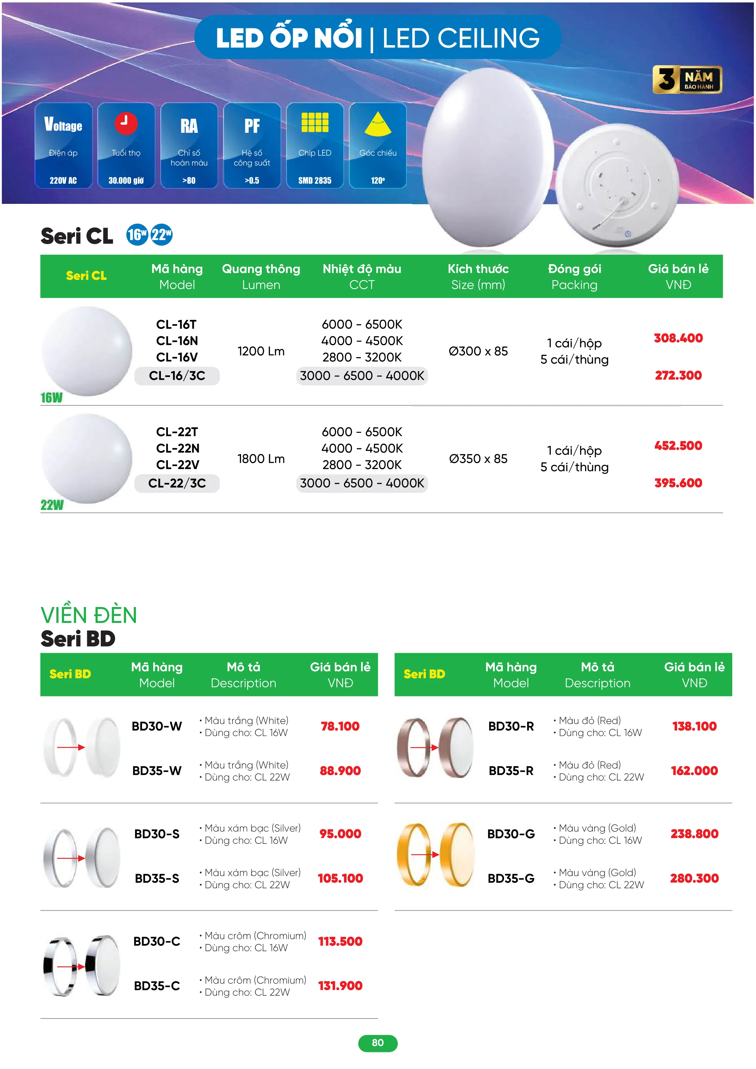 22W - 3 màu ánh sáng | CL-22/3C | 395.600 | 20% | 316.480 |