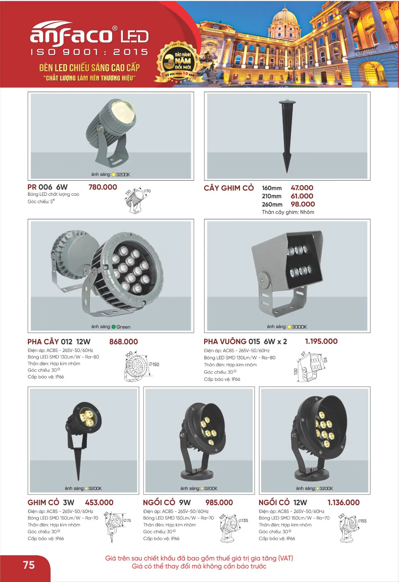 Đèn LED PHA VUÔNG 015 Anfaco 6W*2