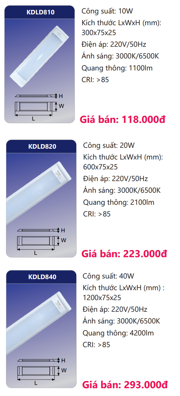 1.2m - 40W | KDLD840 | 1200*75*25 | 4200lm | 250.000 | 30% | 175.000 |