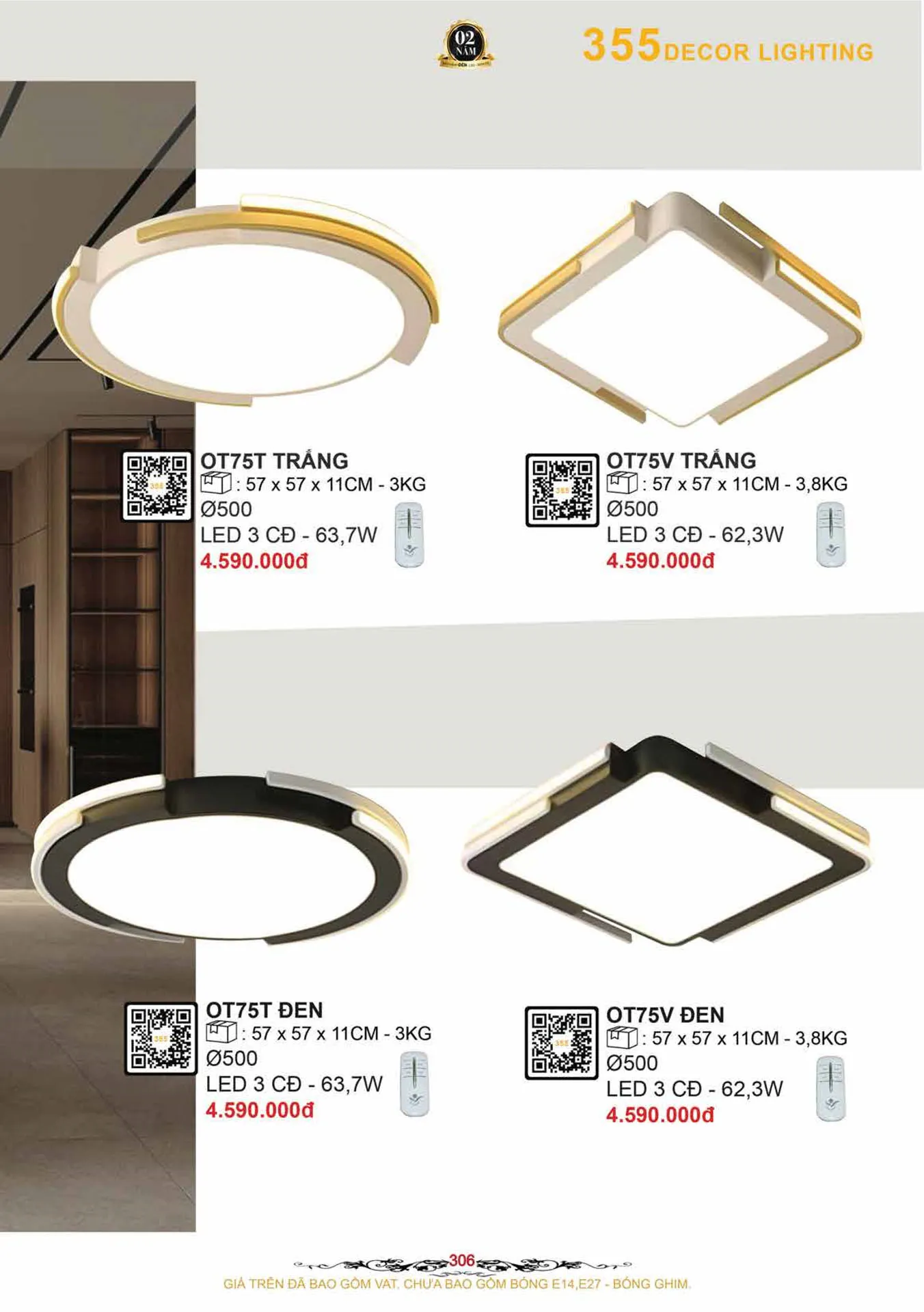Đèn ốp trần mica 355 DECOR OT75T Đen