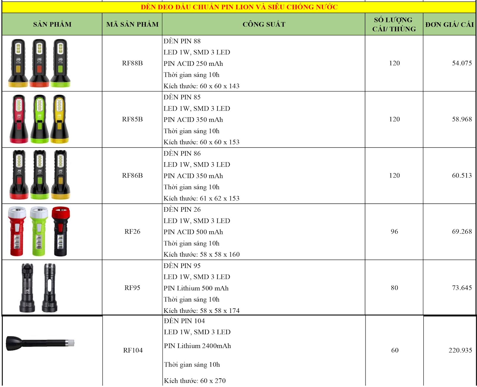 - Loại : Đèn pin
