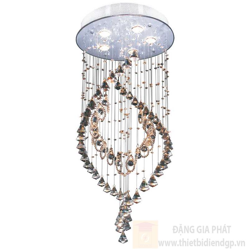 Đèn thả pha lê xoắn Ø450*H1000, Led 3W*5 lamp, 3 chế độ, 52 crystals 1 K9, 20 crystals 1 K9