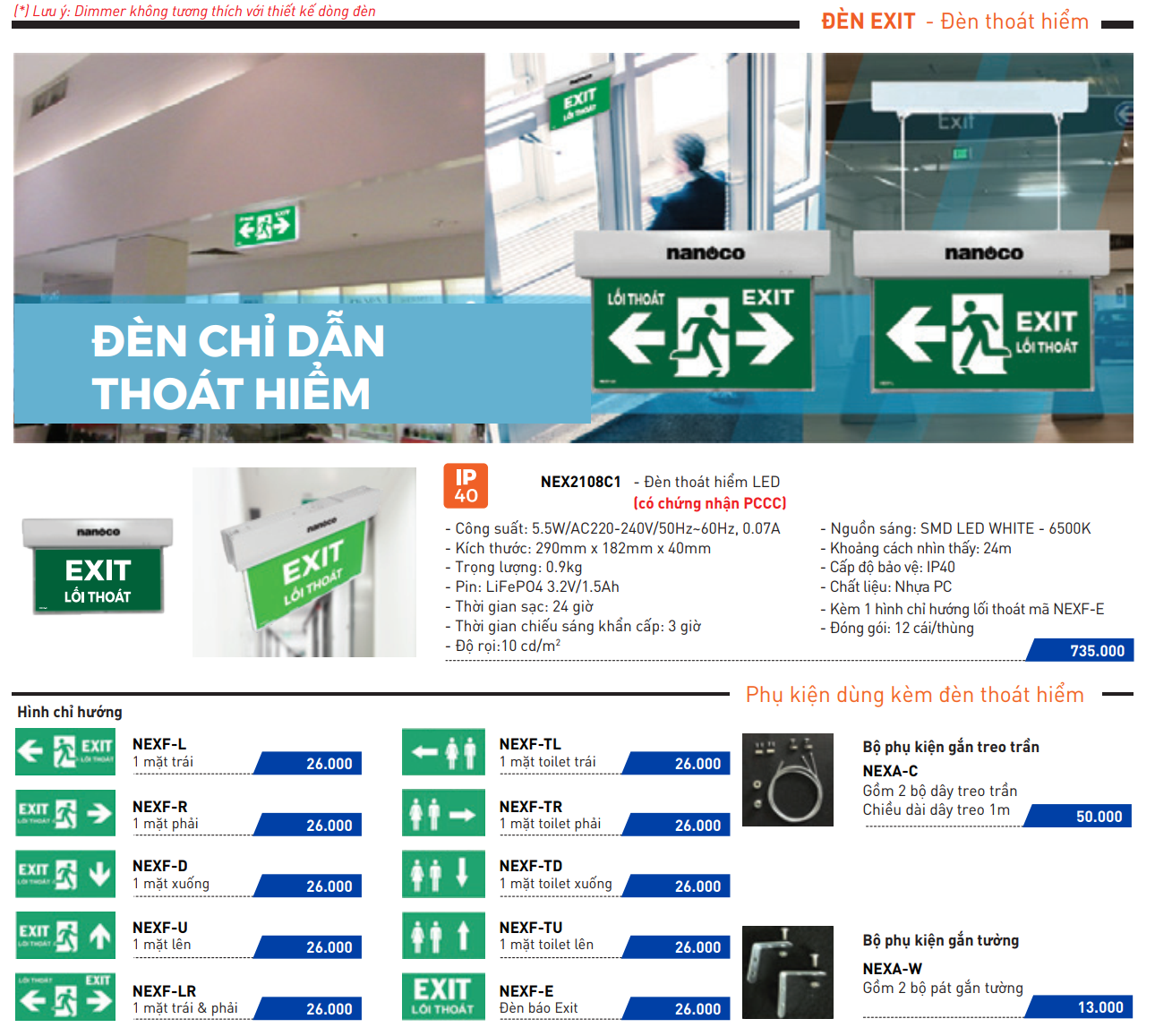 - NEX2108C1 - Đèn thoát hiểm LED (có chứng nhận PCCC)
