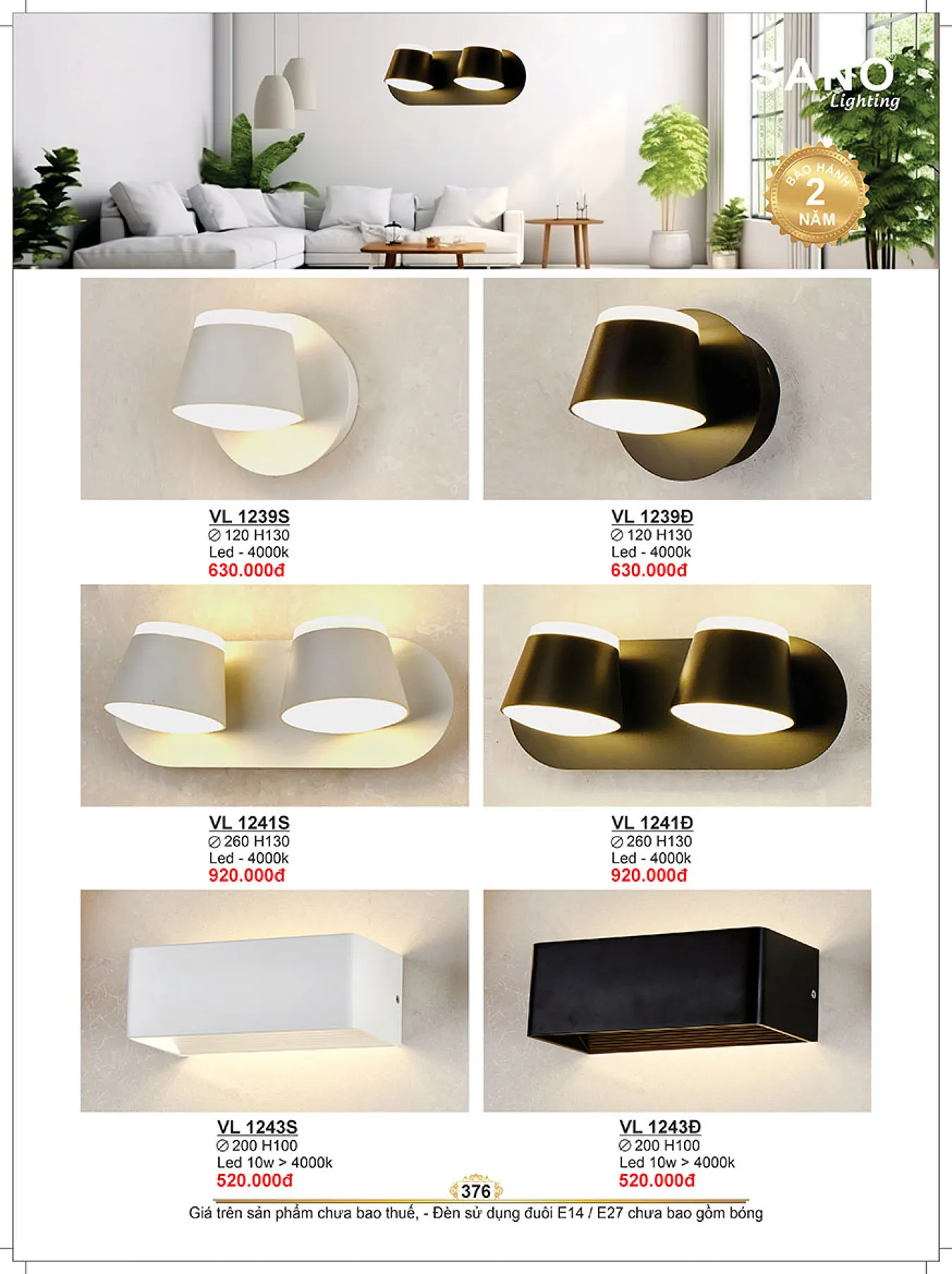 Đèn vách Sano VL 1241 Ø260*H130 Led 4000K